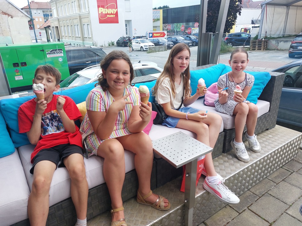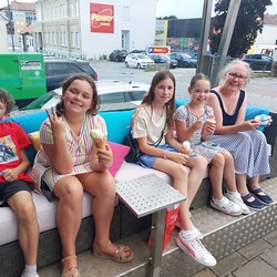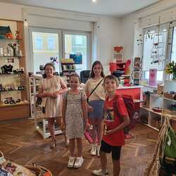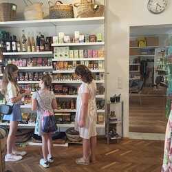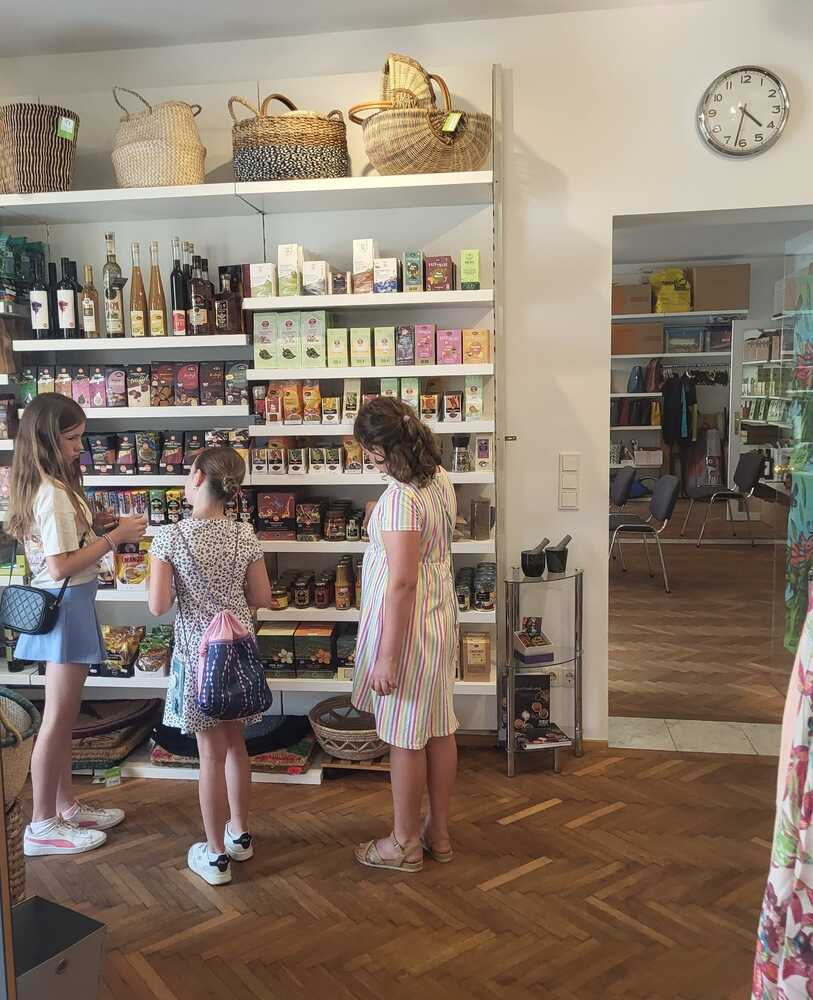Unser Treffen für 10-13 Jährige fand sogar in den Sommerferien statt. Nach einer Einstimmung im Pfarrheim, haben wir den Weltladen besucht und die vielen schönen Dinge bestaunt. Das eine oder andere haben wir auch gekauft. Es hat uns total gefallen. Dann gemütlich zusammensitzen mit einem Eis und noch in der Kirche unser Lieblingslied singen ... wir freuen uns auf die weiteren Treffen ab September 2024!
