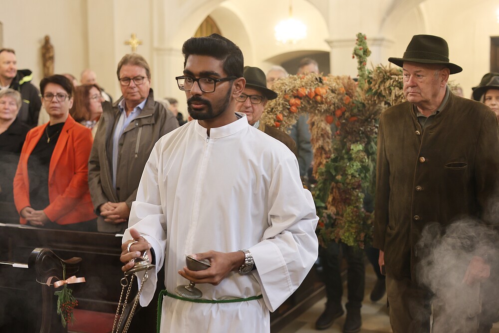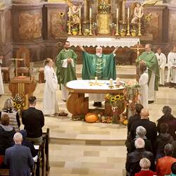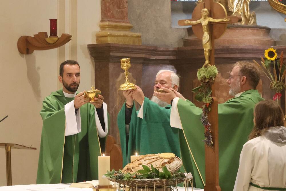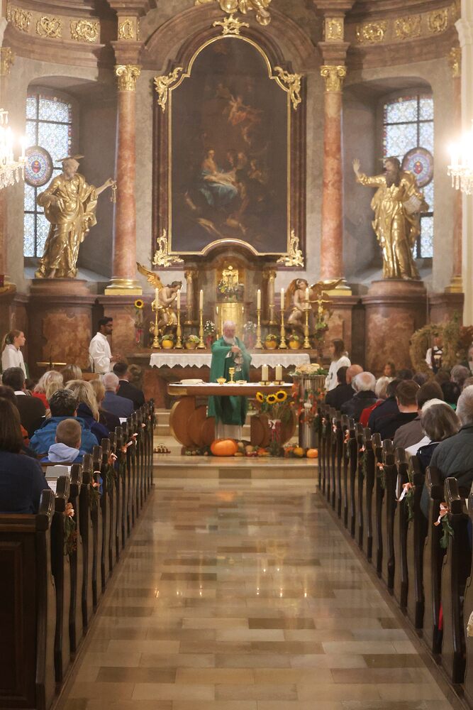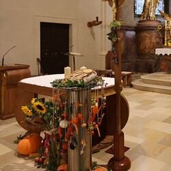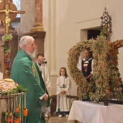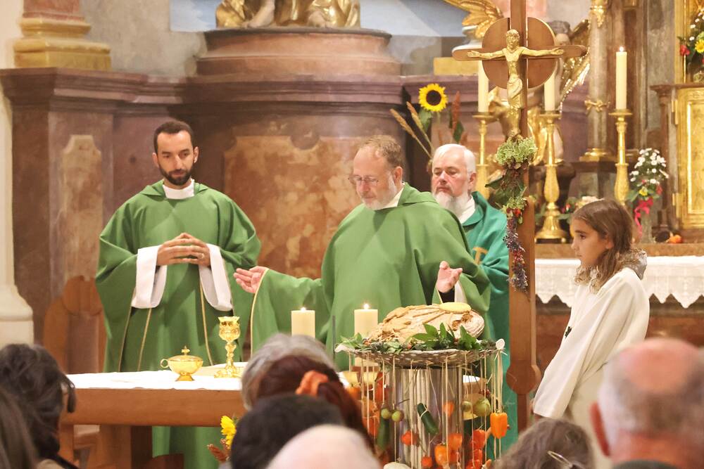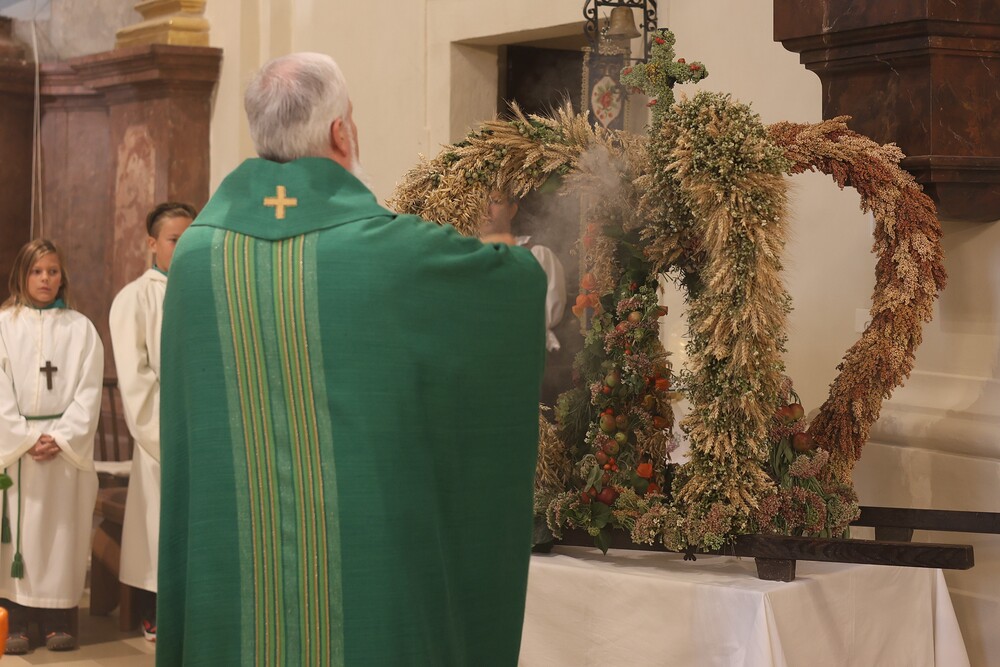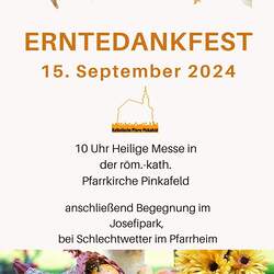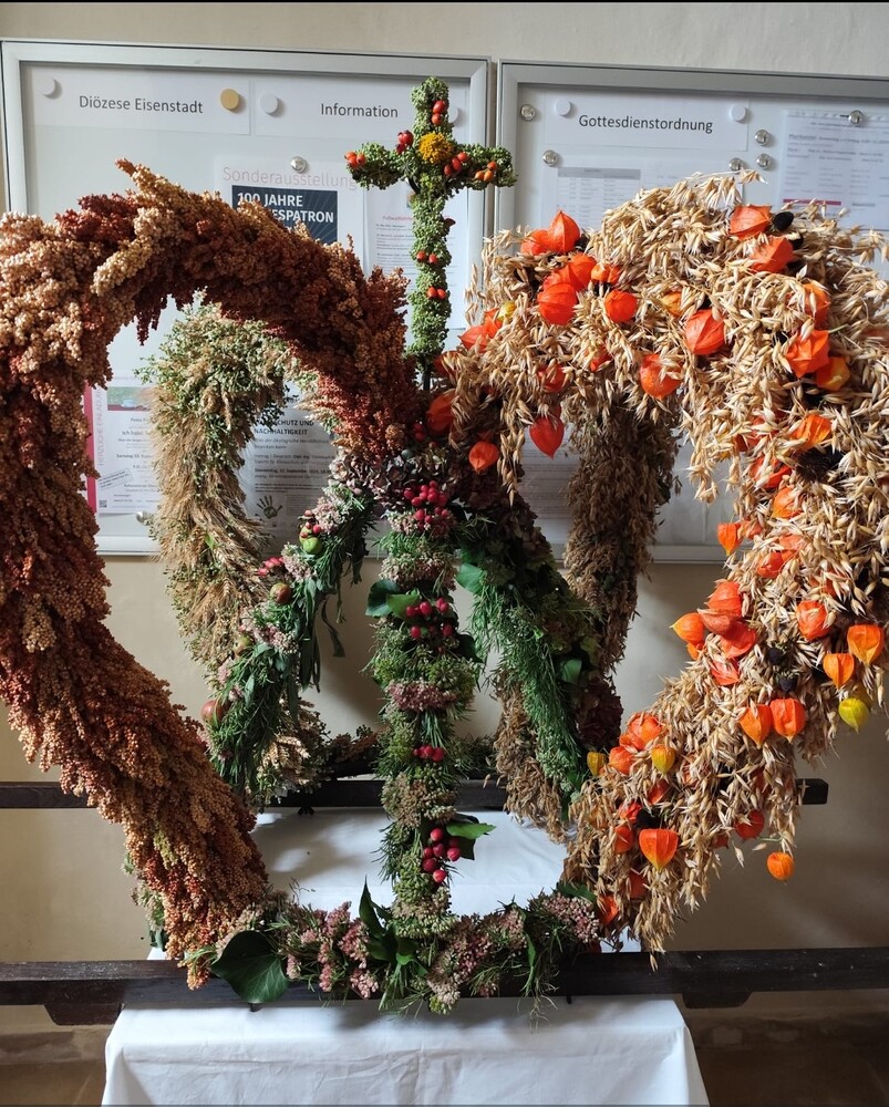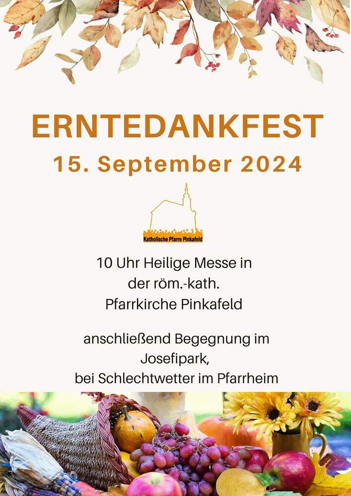 Trotz des Regens feierten die Pfarrgemeinde am Sonntag, 15. September den Erntedankgottesdienst in unserer Pfarrkirche, dem Pfarrer Norbert Filipitsch vorstand. Die Jägerschaft trug die Erntekrone in die Kirche. Eine Abordnung der Feuerwehr Pinkafeld feierte ebenfalls das Erntedankfest in der Kirche mit.