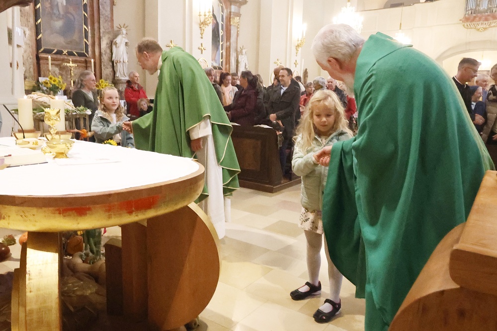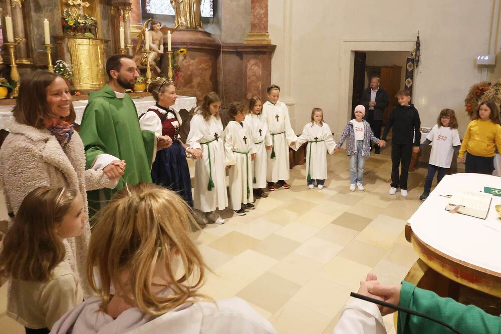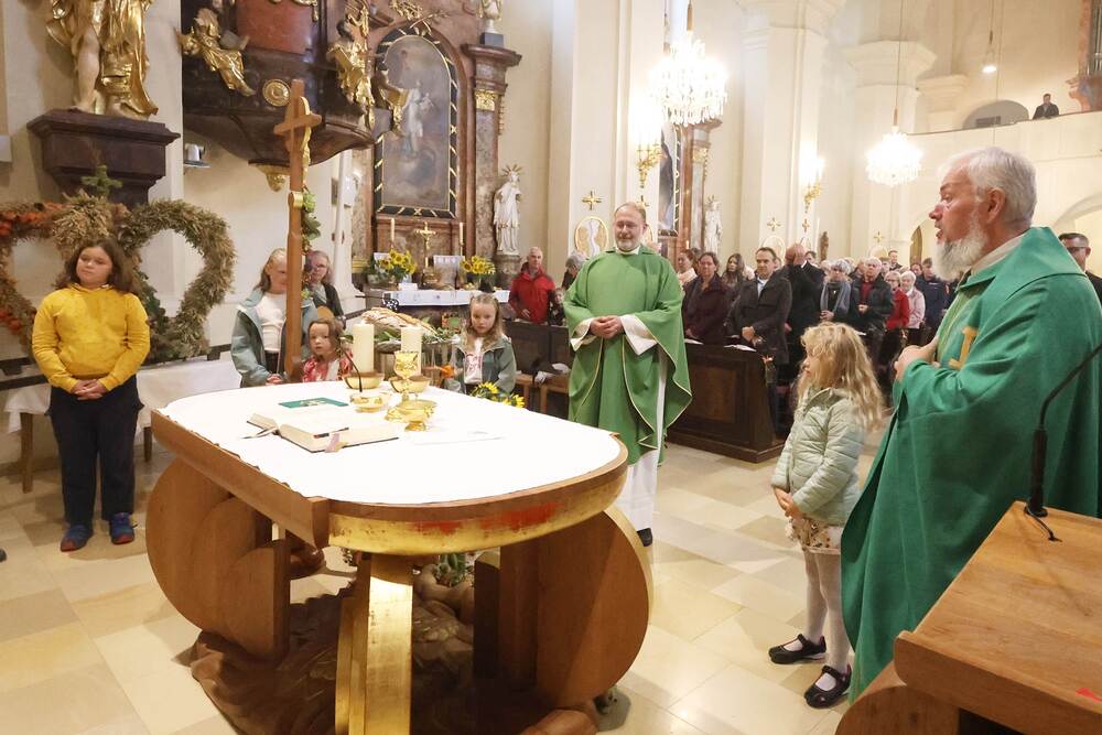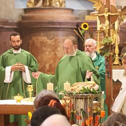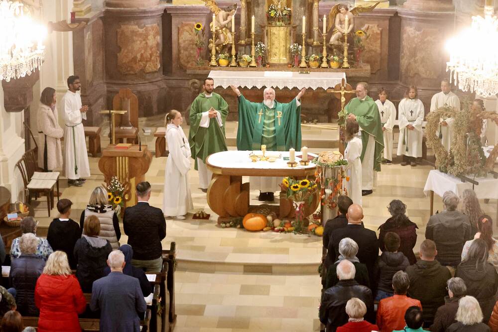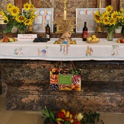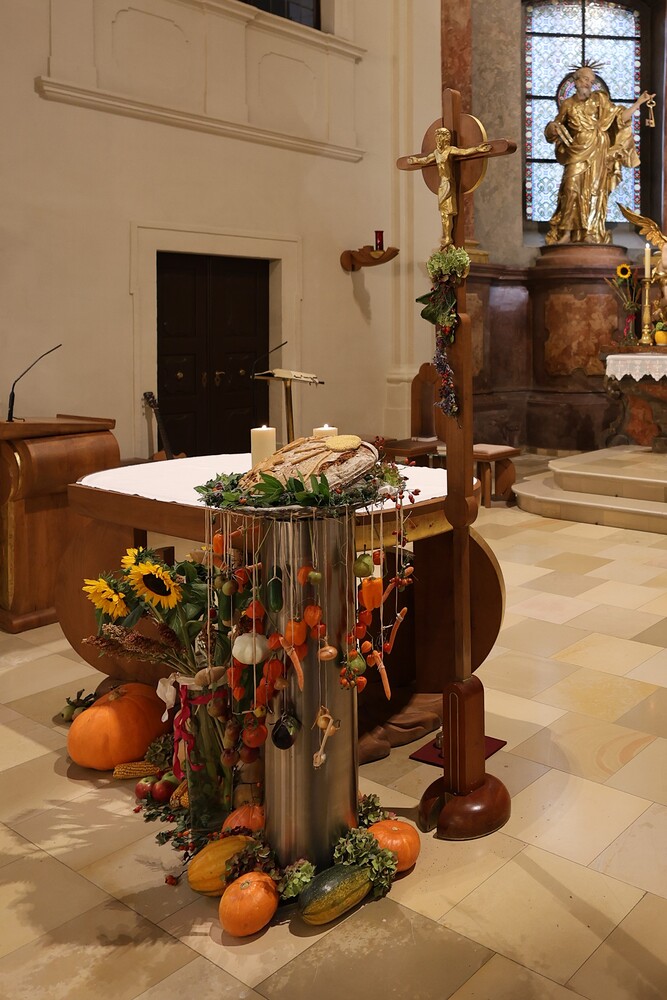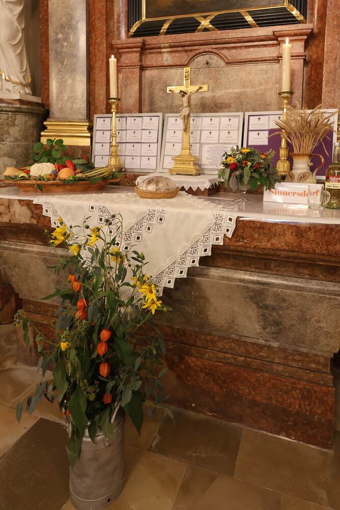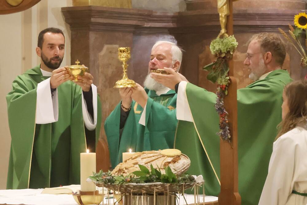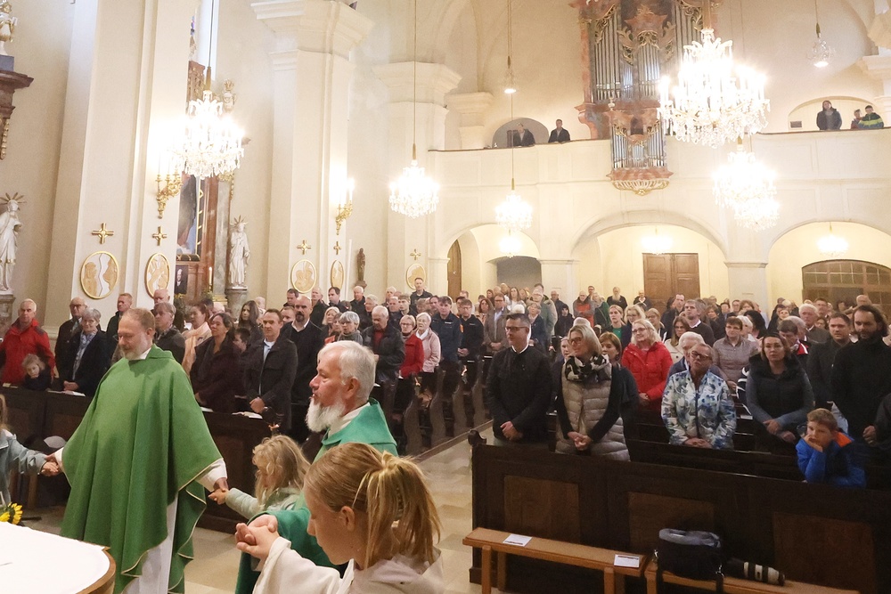 Trotz des Regens feierten die Pfarrgemeinde am Sonntag, 15. September den Erntedankgottesdienst in unserer Pfarrkirche, dem Pfarrer Norbert Filipitsch vorstand. Die Jägerschaft trug die Erntekrone in die Kirche. Eine Abordnung der Feuerwehr Pinkafeld feierte ebenfalls das Erntedankfest in der Kirche mit.