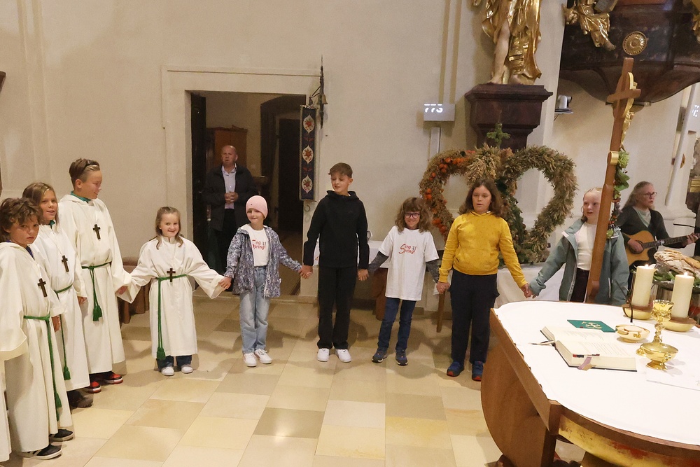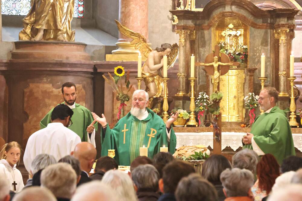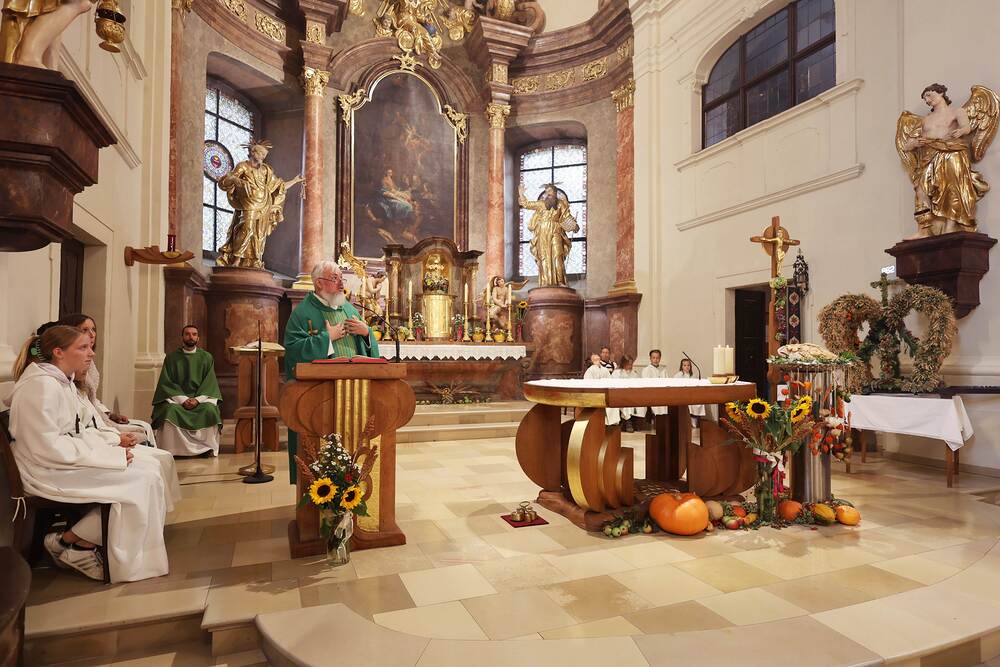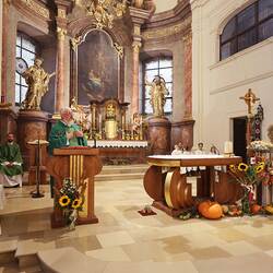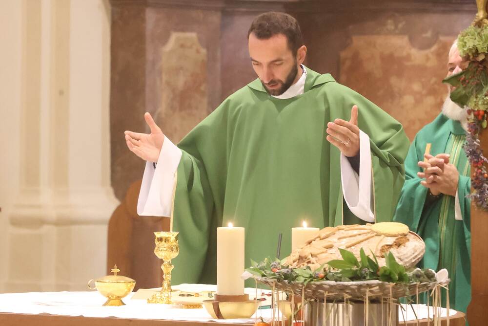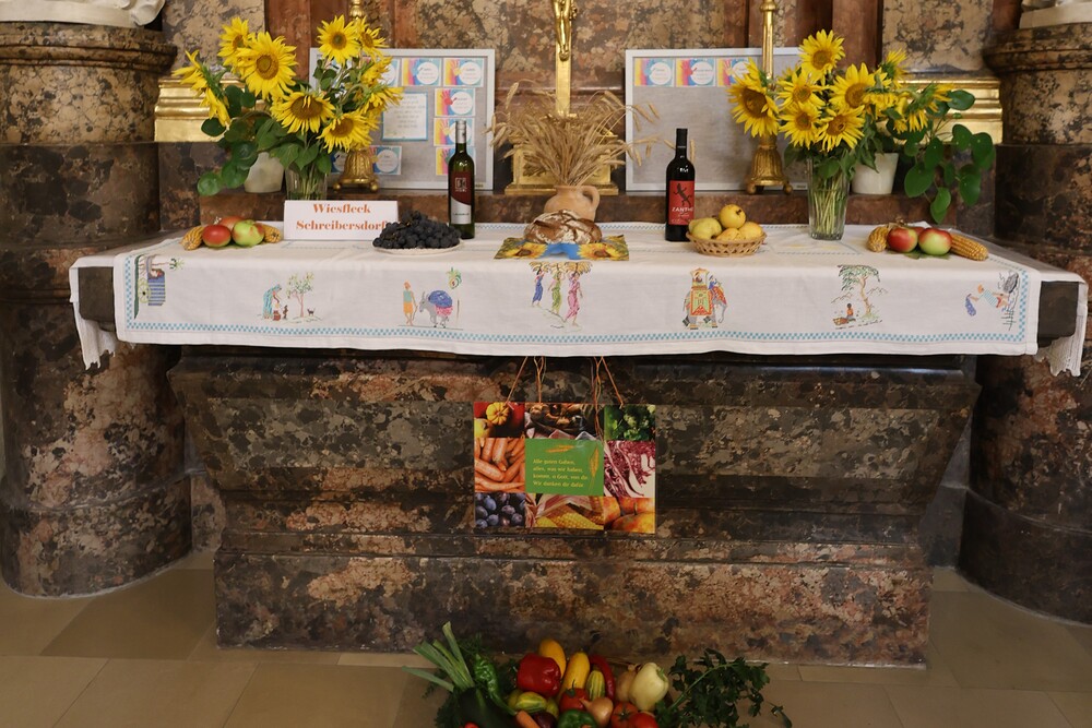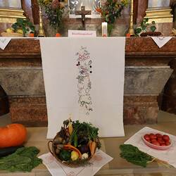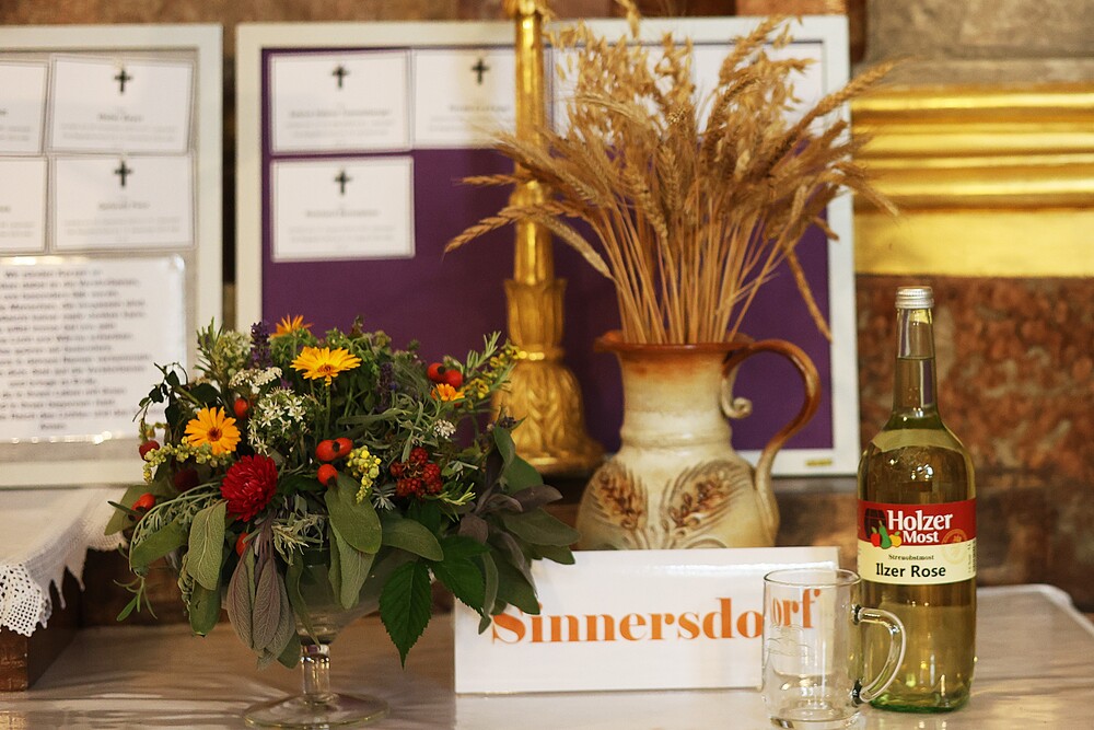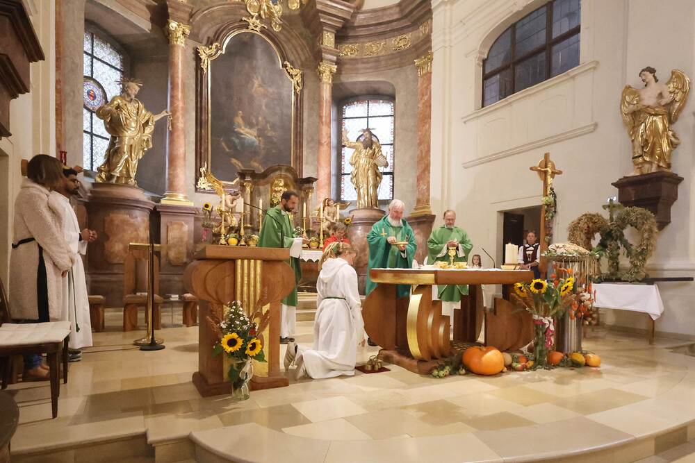 Trotz des Regens feierten die Pfarrgemeinde am Sonntag, 15. September den Erntedankgottesdienst in unserer Pfarrkirche, dem Pfarrer Norbert Filipitsch vorstand. Die Jägerschaft trug die Erntekrone in die Kirche. Eine Abordnung der Feuerwehr Pinkafeld feierte ebenfalls das Erntedankfest in der Kirche mit.