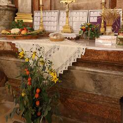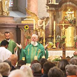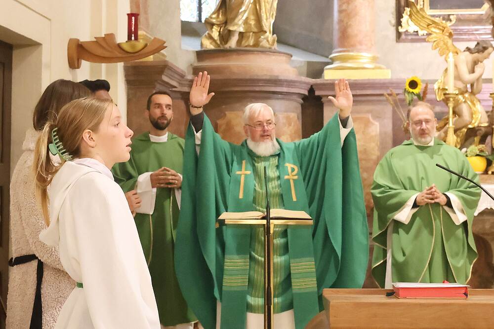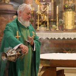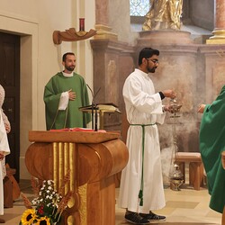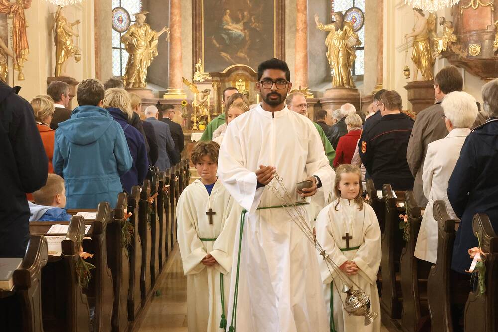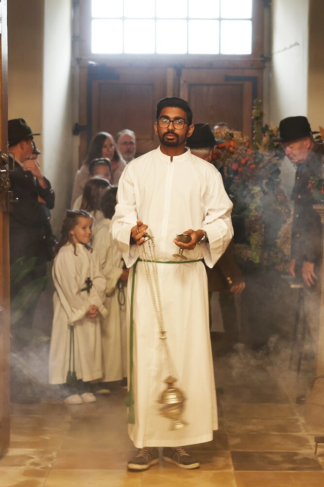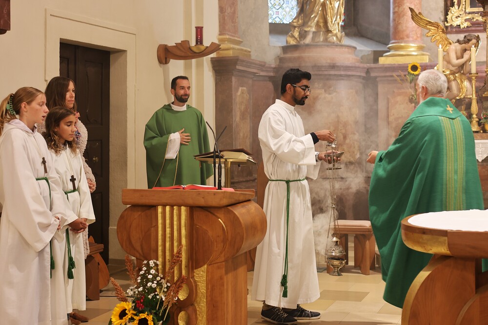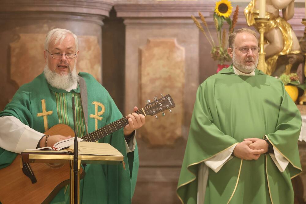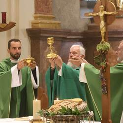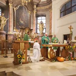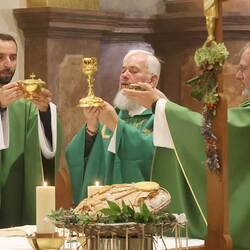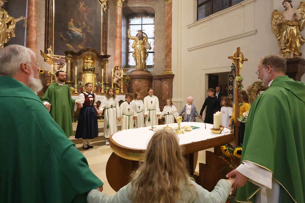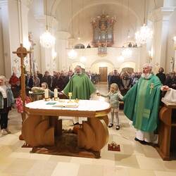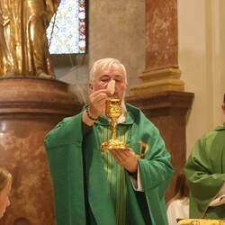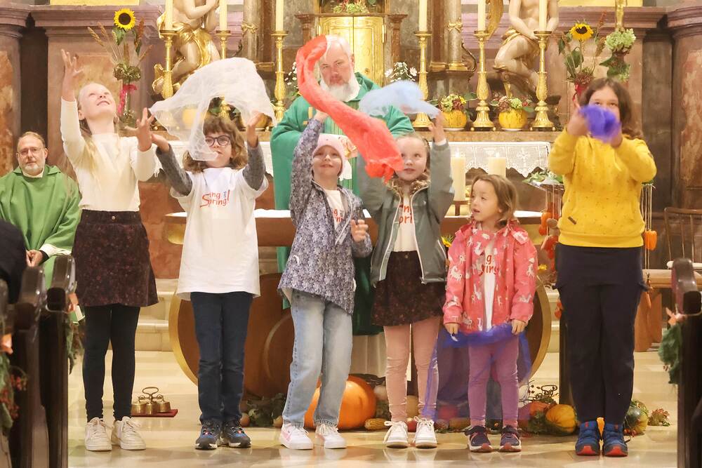 Trotz des Regens feierten die Pfarrgemeinde am Sonntag, 15. September den Erntedankgottesdienst in unserer Pfarrkirche, dem Pfarrer Norbert Filipitsch vorstand. Die Jägerschaft trug die Erntekrone in die Kirche. Eine Abordnung der Feuerwehr Pinkafeld feierte ebenfalls das Erntedankfest in der Kirche mit.