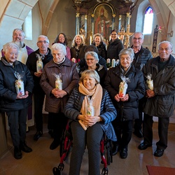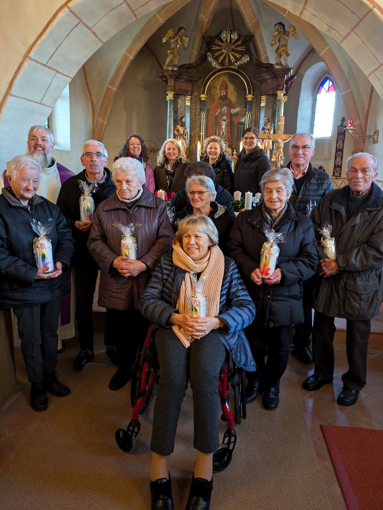 Dies war der Einladungstext, der an die Jubilarinnen und Jubilare erging. Am Samstag, 30. November 2024 feierten diese gemeinsam mit ihren Familien und Pfarrer Norbert Filipitsch die Heilige Messe in der Kirche, um Gott für seinen Beistand zu danken. Als Erinnerung an das Jubiläum und die gemeinsame Messe wurde den Gefeierten eine Kerze überreicht.
