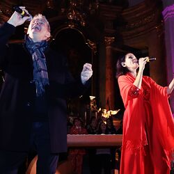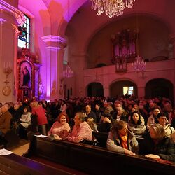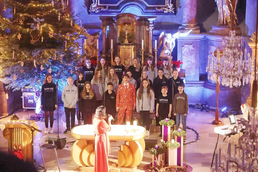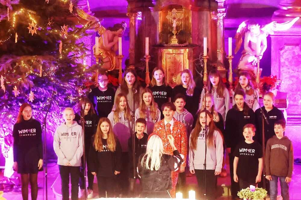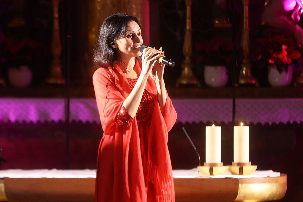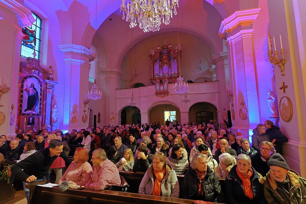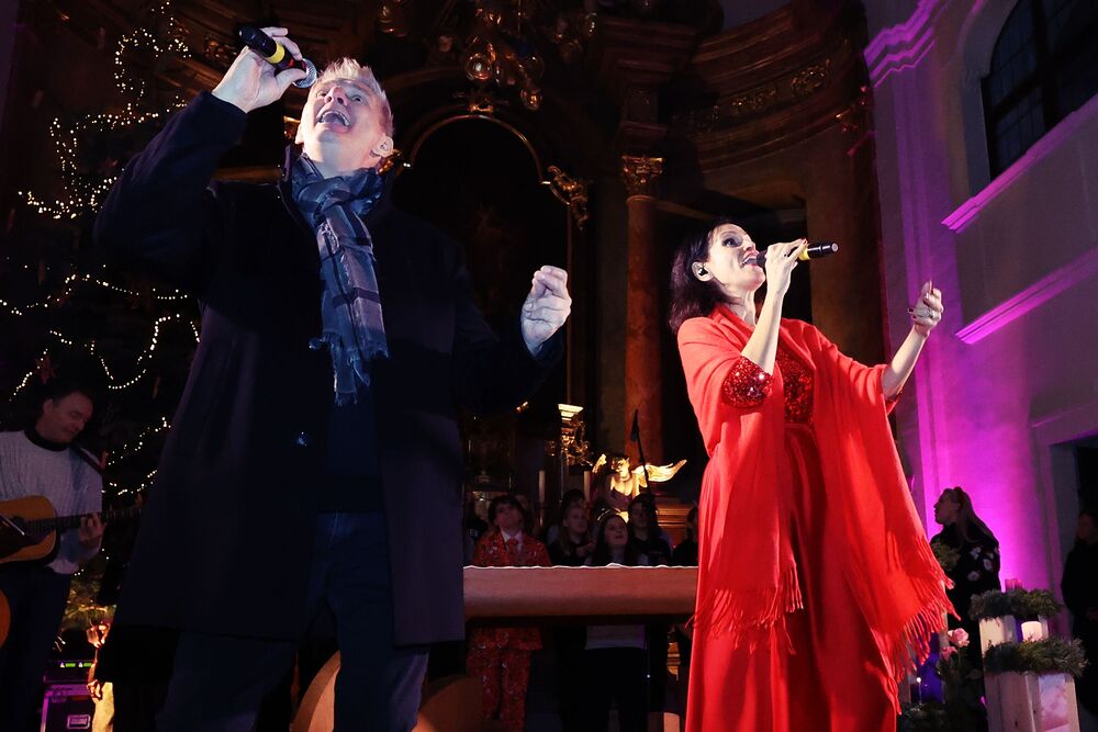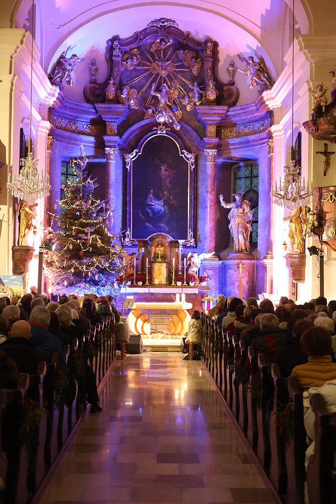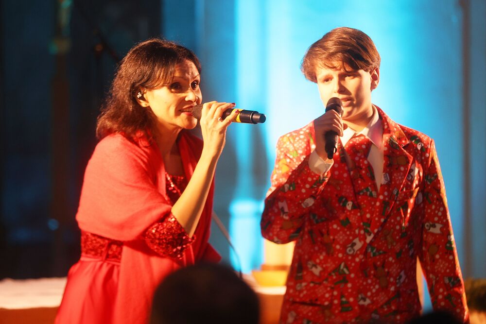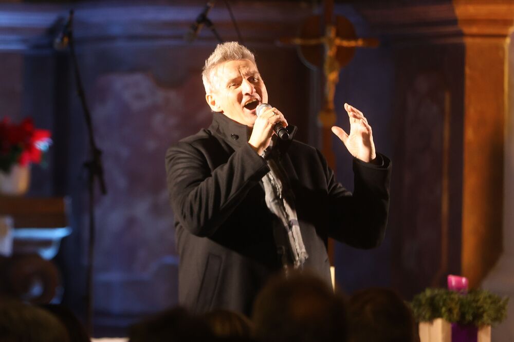 Sänger Silvio Samoni und die Pinkafelder Sängerin Fausta Gallelli konnten mit ihren Liedern am Sonntag vor Weihnachten die vielen Besucherinnen und Besucher in der röm.-kath. Pfarrkirche Pinkafeld auf den Heiligen Abend einstimmen. Begleitet wurden sie dabei vom Unterstufenchor des Wimmer Gymnasiums Oberschützen und von Johannes Ringhofer an der Orgel sowie Gregor Görtler an der Gitarre.
