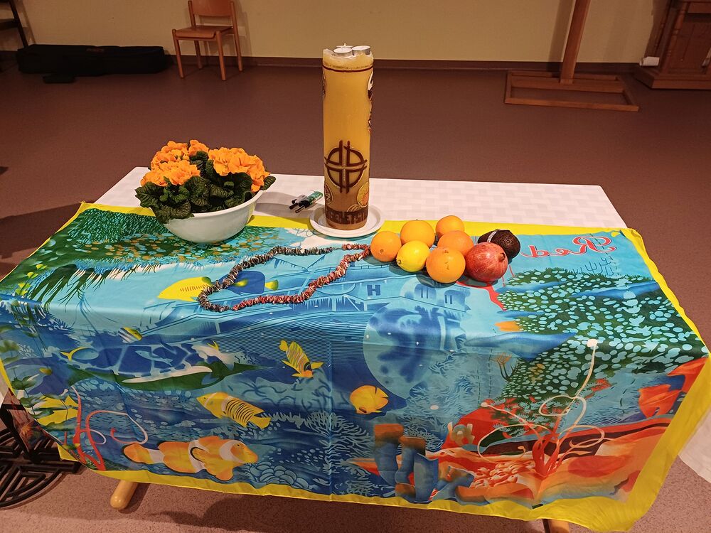 Verbunden mit den Frauen der Cookinseln und den Menschen in mehr als 170 Ländern feierten auch wir im evangelischen Gemeindehaus in Pinkafeld heuer diese Liturgie und ließen uns mit hineinnehmen in das Vertrauen, in den Glauben und die Naturverbundenheit der Frauen der Cookinseln.