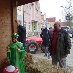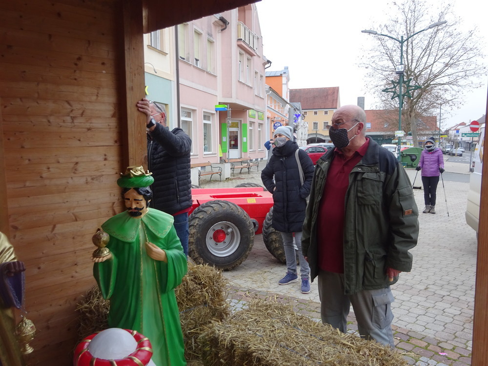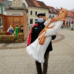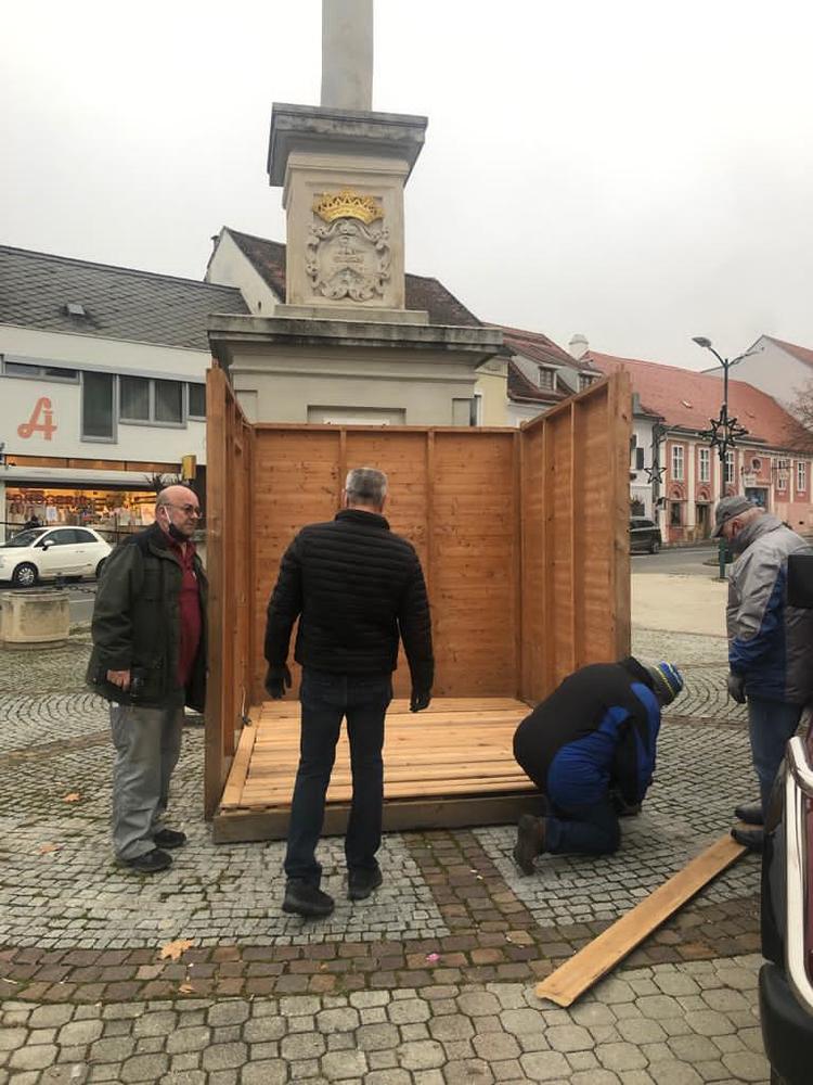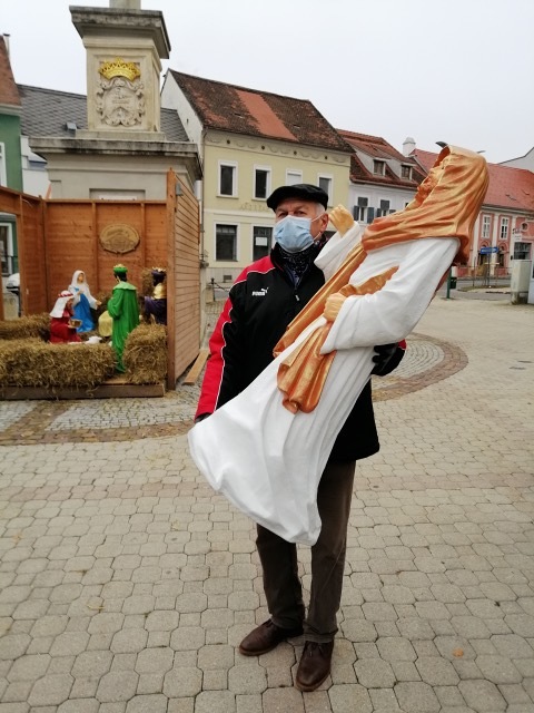 So freuen wir uns, dass eine Gruppe von Engagierten rund um den Krippenbauverein Südburgenland den Brauch der Volksfrömmigkeit lebendig werden ließ und am Beginn des Advents 2020 vor der Mariensäule mitten in unserer Stadt eine Krippe mit Stall und neuen schönen Figuren aufstellte.