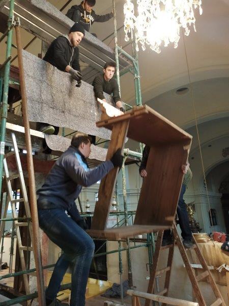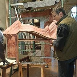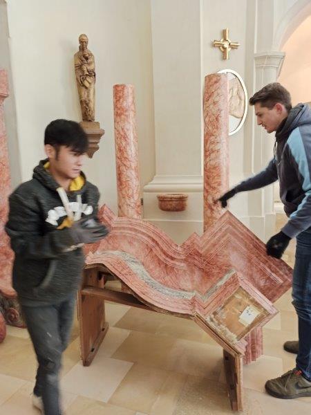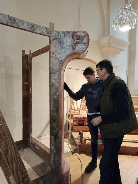Das barocke, vom Denkmalamt als künstlerisch sehr wertvoll eingeschätzte Gehäuse der Orgel unserer Pfarrkirche wuchs im Advent nach den Restaurierungsarbeiten im Atelier Stepan in Wildon wieder stufenweise zusammen. Carl Maria Stepan und sein eingespieltes Team haben Fantastisches geleistet.