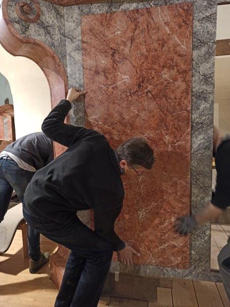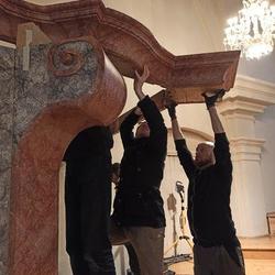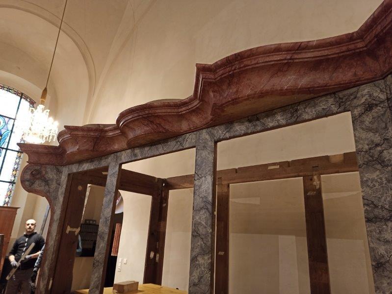 Drei Monate dauerte allein die Abnahme der in den 1960er-Jahren aufgetragenen Übermalung, das mühevolle Hervorbringen der ursprünglichen Farbgebung aus dem Jahre 1790 und das Anbringen der Retusche. Unglaublich, wie schön das Ganze geworden ist! Ohne Zweifel ein Juwel barocker Handwerks- und Gestaltungskunst.
