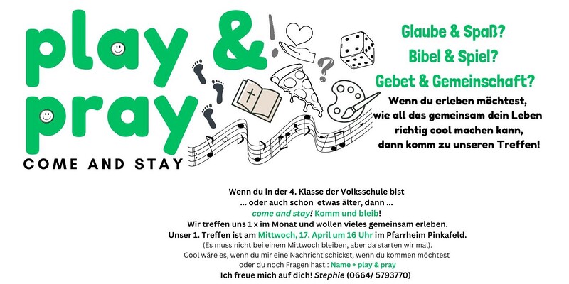 Unter dem Motto "play & pray" trifft sich eine Gruppe zu verschiedensten Aktivitäten: Singen, Spielen, Basteln, Beten, Krypta putzen, Essen machen, ... Alles macht Spaß! Die Gemeinschaft macht Spaß!