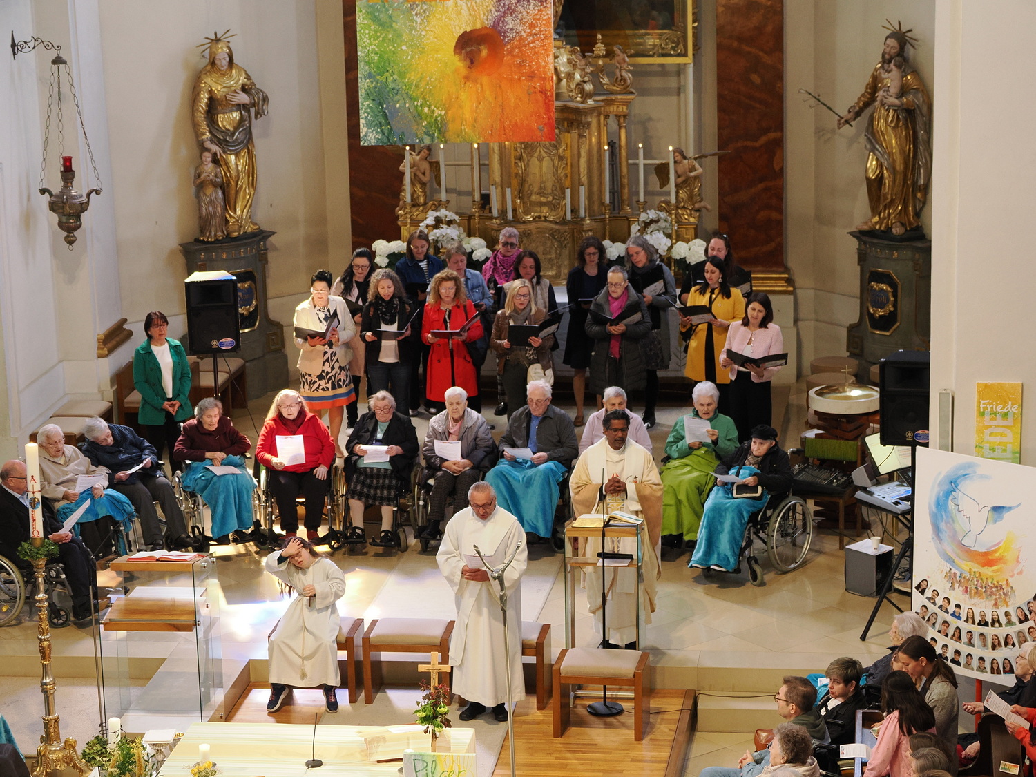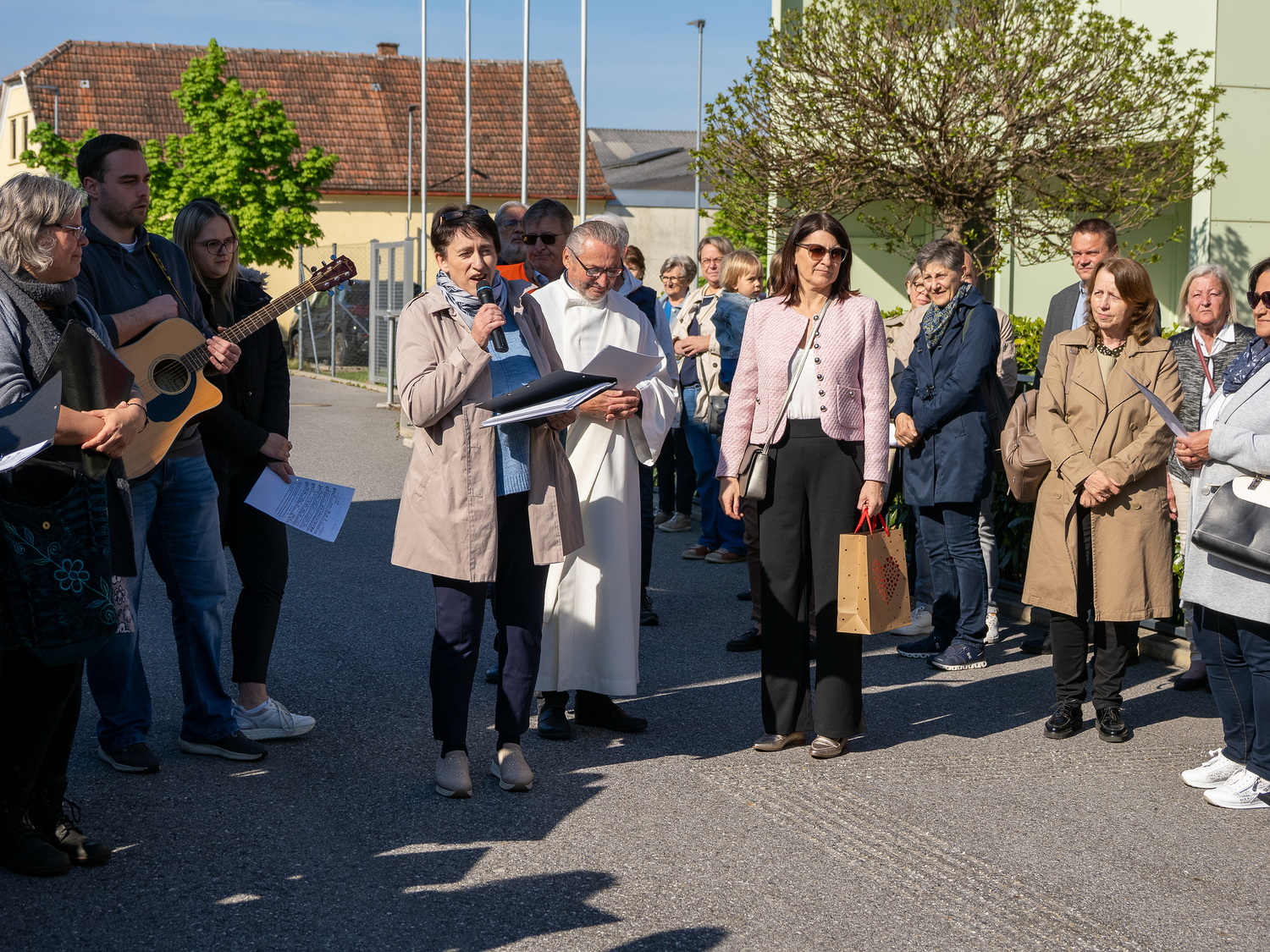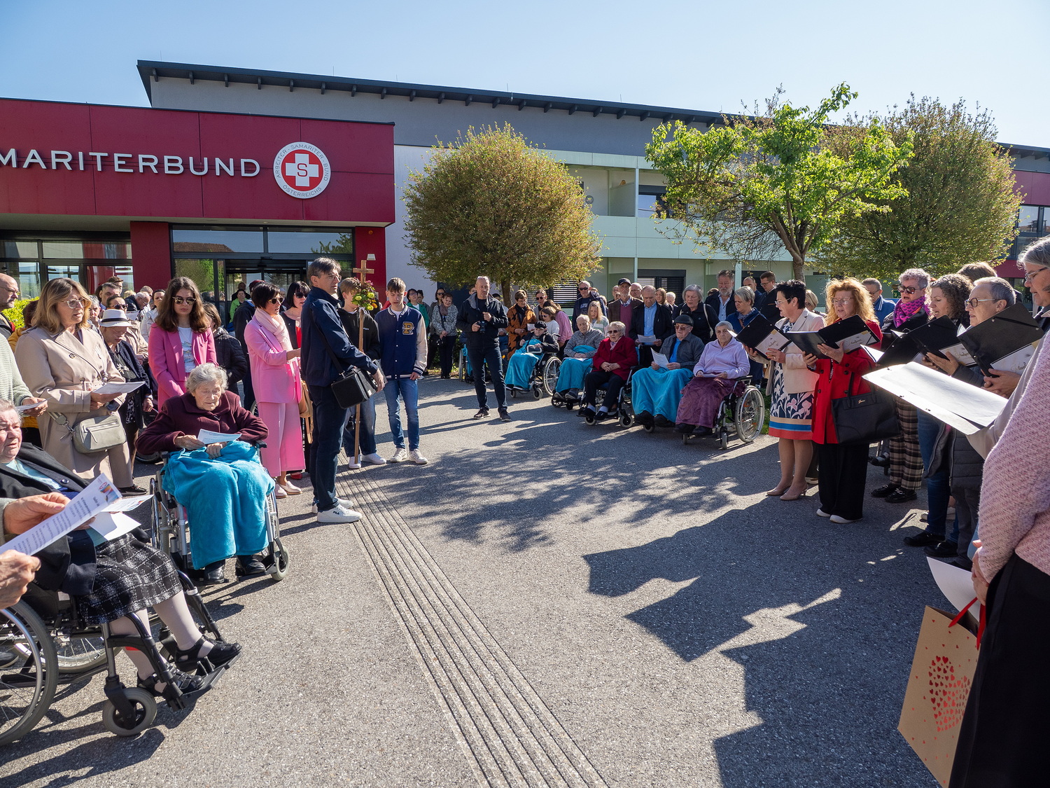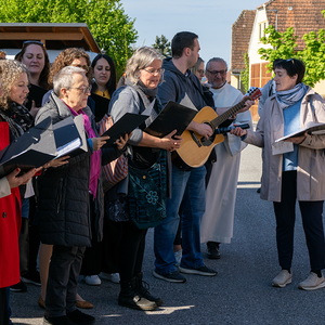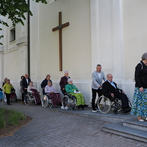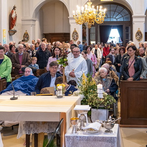 Am Sonntag, 27.04.2025 frühmorgens pilgerte eine große Menschenschar gemeinsam mit mehr als 30 Rollstuhlfahrerinnen und Fahrern bei herrlichem Sonnenschein singend und betend vom Pflegekompetenzzentrum Großpetersdorf in die römisch-katholische Pfarrkirche, die für die Pilgerschar an diesem Tag zur Wallfahrtskirche erklärt wurde.