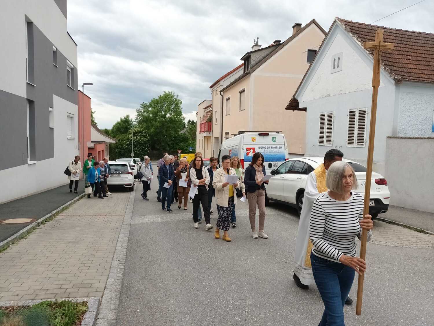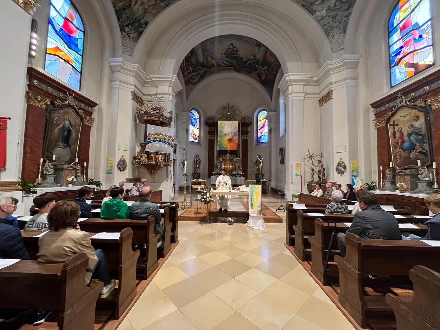 Aufgrund des unbeständigen Wetters führte uns heuer nur eine kurze Prozession in die Pfarrkirche um dort gemeinsam Gottesdienst zu feiern.