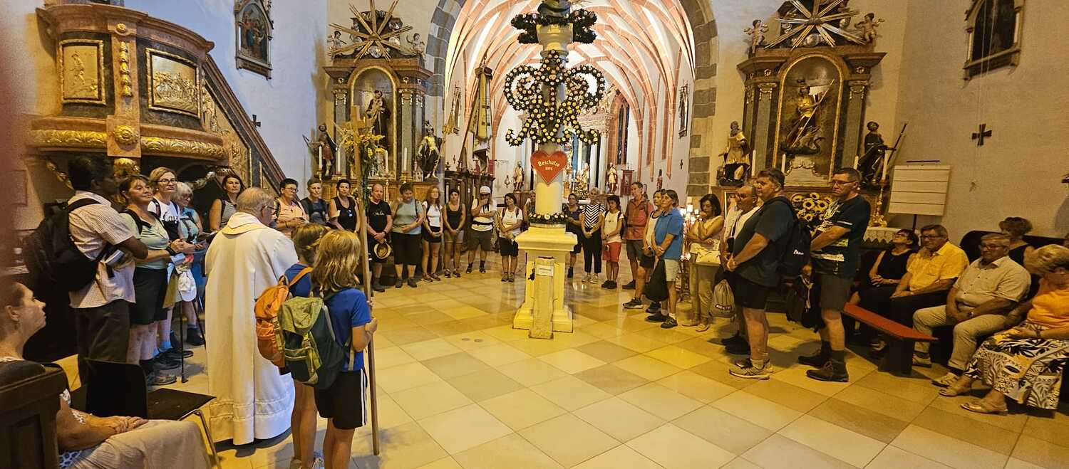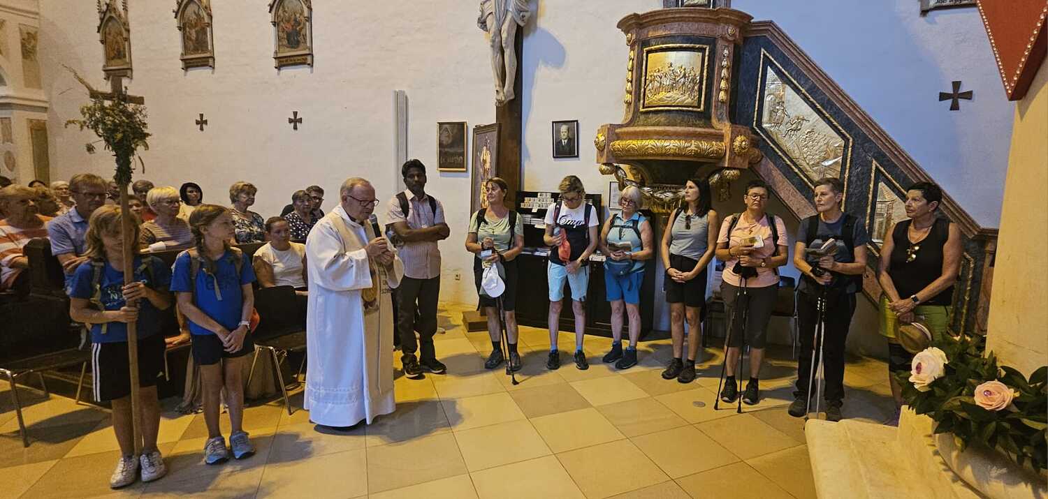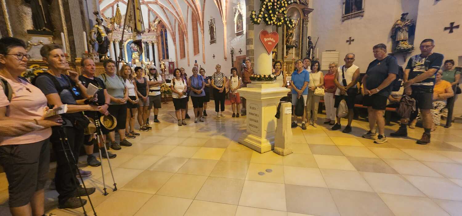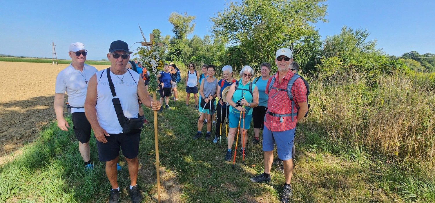 Die Strecke, ausgehend von Großpetersdorf über Kohfidisch, Harmisch, Radling- u Wintnerberg zu unserem Ziel, der Wallfahrtskirche Maria Weinberg, führte uns durch Felder, schattenspendende Waldstücke und vorbei an Bildstöcken und Kapellen. Immer wieder legten wir kurze Pausen ein – zum Ausruhen, aber auch zum Innehalten.