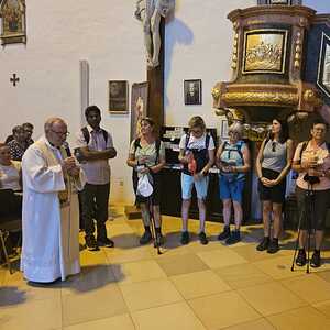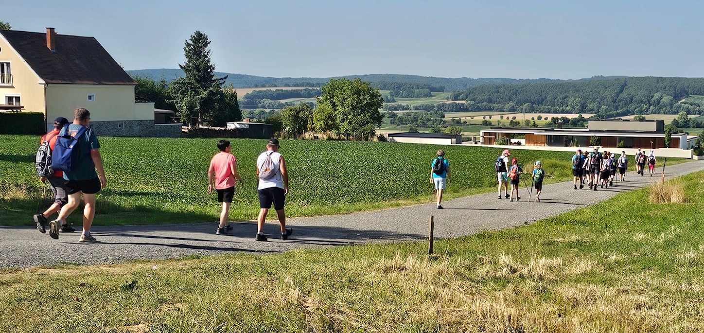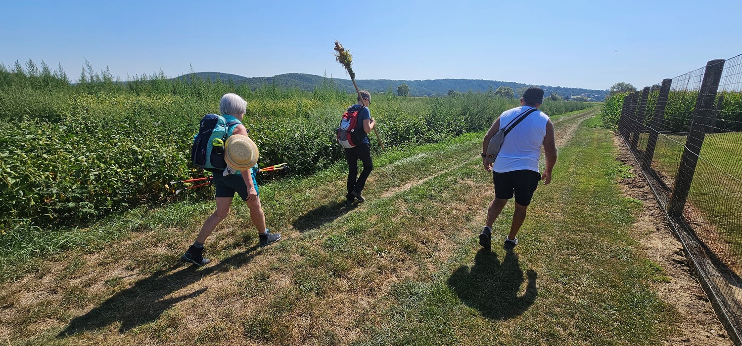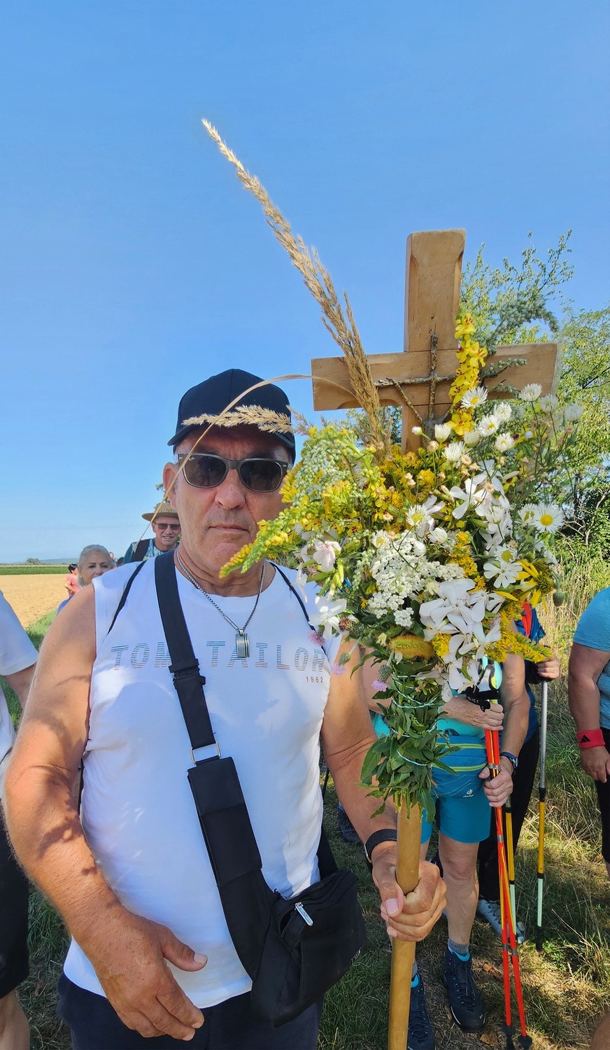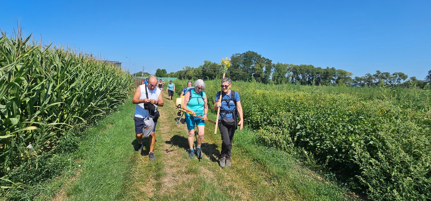 Die Strecke, ausgehend von Großpetersdorf über Kohfidisch, Harmisch, Radling- u Wintnerberg zu unserem Ziel, der Wallfahrtskirche Maria Weinberg, führte uns durch Felder, schattenspendende Waldstücke und vorbei an Bildstöcken und Kapellen. Immer wieder legten wir kurze Pausen ein – zum Ausruhen, aber auch zum Innehalten.