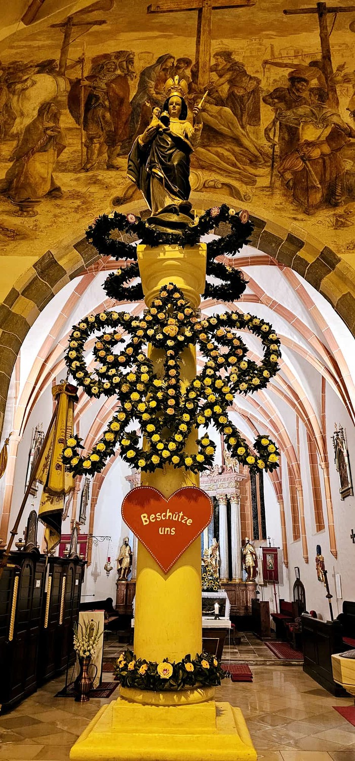 Abgekämpft, erschöpft und dennoch erfüllt erreichten wir unser Ziel, Maria Weinberg. Die letzten Meter, die Stiegen zur Wallfahrtskirche auf dem Hügel betraten wir schweigend – ein stiller, für mich bewegender Moment, ebenso der feierliche, gemeinsame Einzug unserer Wallfahrergruppe.