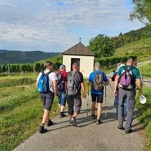 Die Wanderung am Samstag führte die Männergruppe von Krems über Unterloiben, Oberloiben nach Dürnstein. Natürlich hat die traditionelle Messe, welche in der Kirche von Unterloiben gefeiert wurde, nicht gefehlt. Anschließend besuchten wir unseren Freund Hubert, der uns auf ein paar Gläschen Wein einlud.