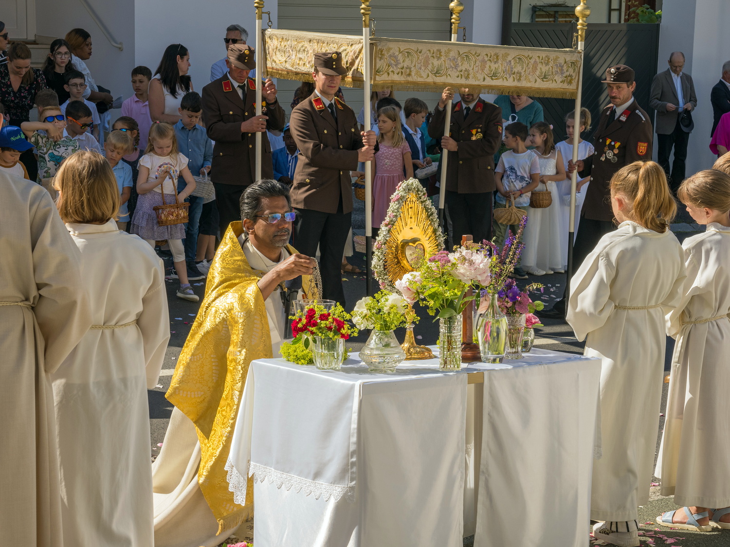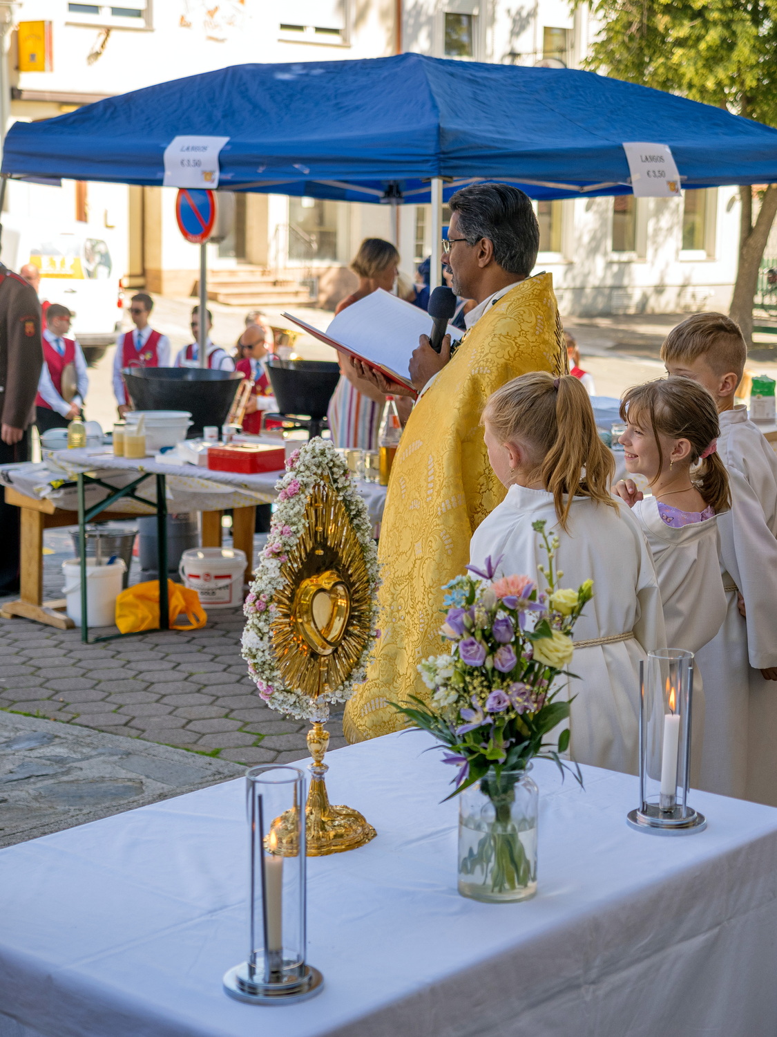 Fronleichnam, beginnend mit der Hl.Messe, danach die Prozession mit den schön geschmückten Altären, und dem anschließendem Pfarrfest, war ein Tag im Kirchenjahr, wie man sich ihn als Pfarre nur wünschen kann.