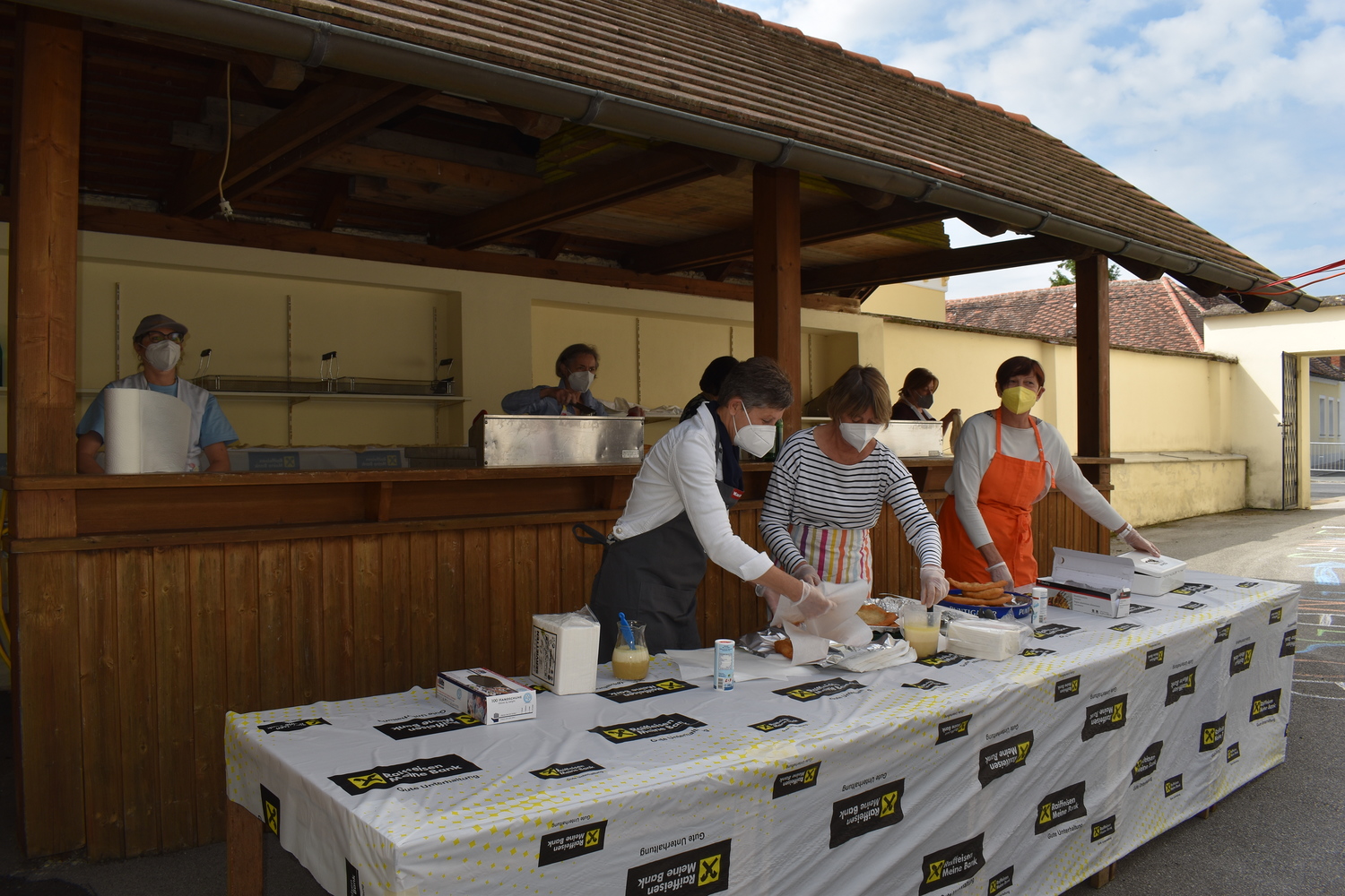 Zahlreiche backfreudige Frauen und Männer brachten uns schon am Vortag köstliche Mehlspeisen, die, liebevoll eingepackt, am Fronleichnamstag nach der Hl. Messe gemeinsam mit Langos zum Verkauf angeboten wurden.