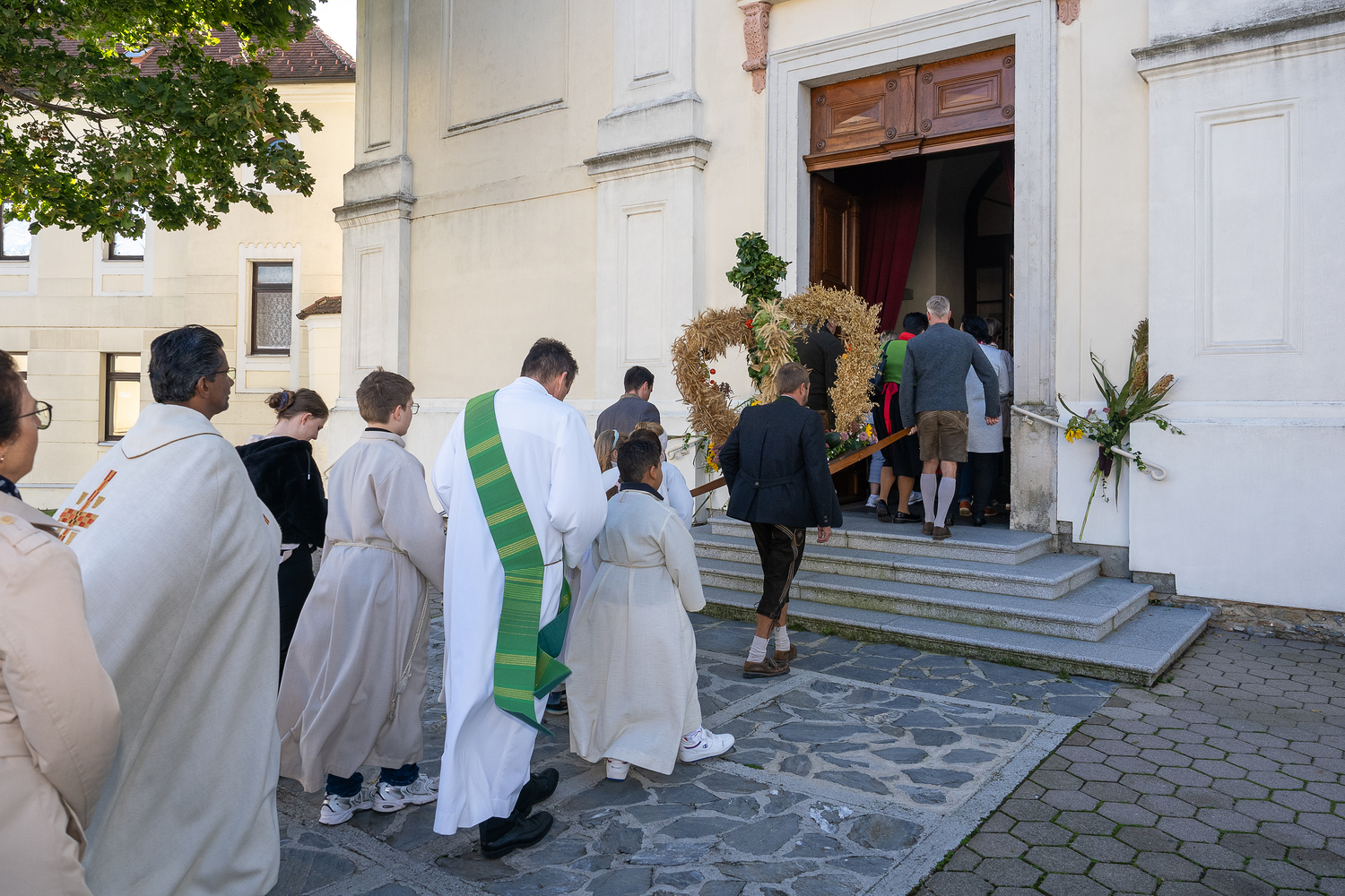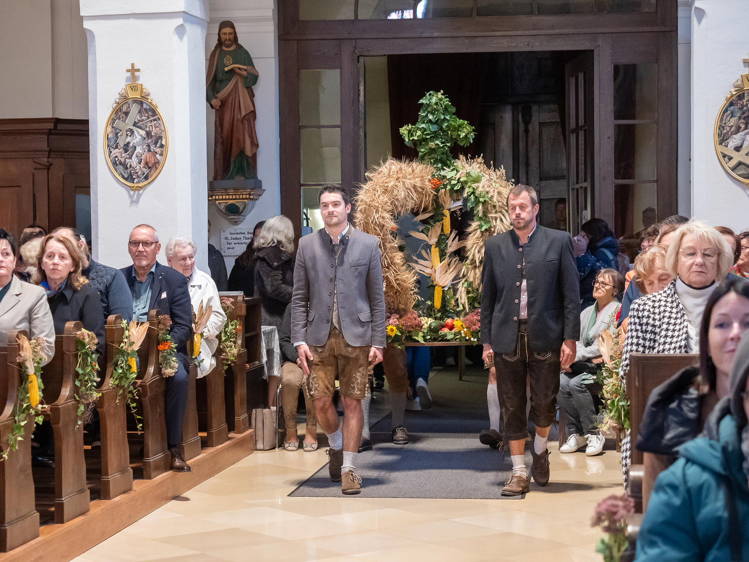Mit der gesegneten Erntekrone zogen wir in die wunderbar geschmückte Kirche ein.