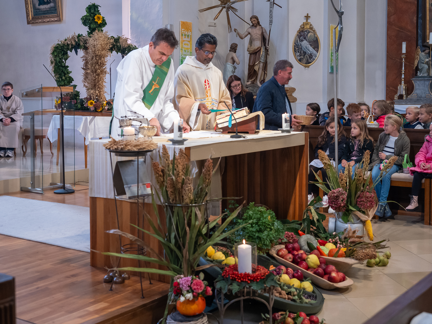 Am 29.September feierten wir nicht nur den Gedenktag unseres Kirchenpatrons, dem hl. Michael, sondern durften Gott auch für die Ernte und die Gaben Dank erweisen.