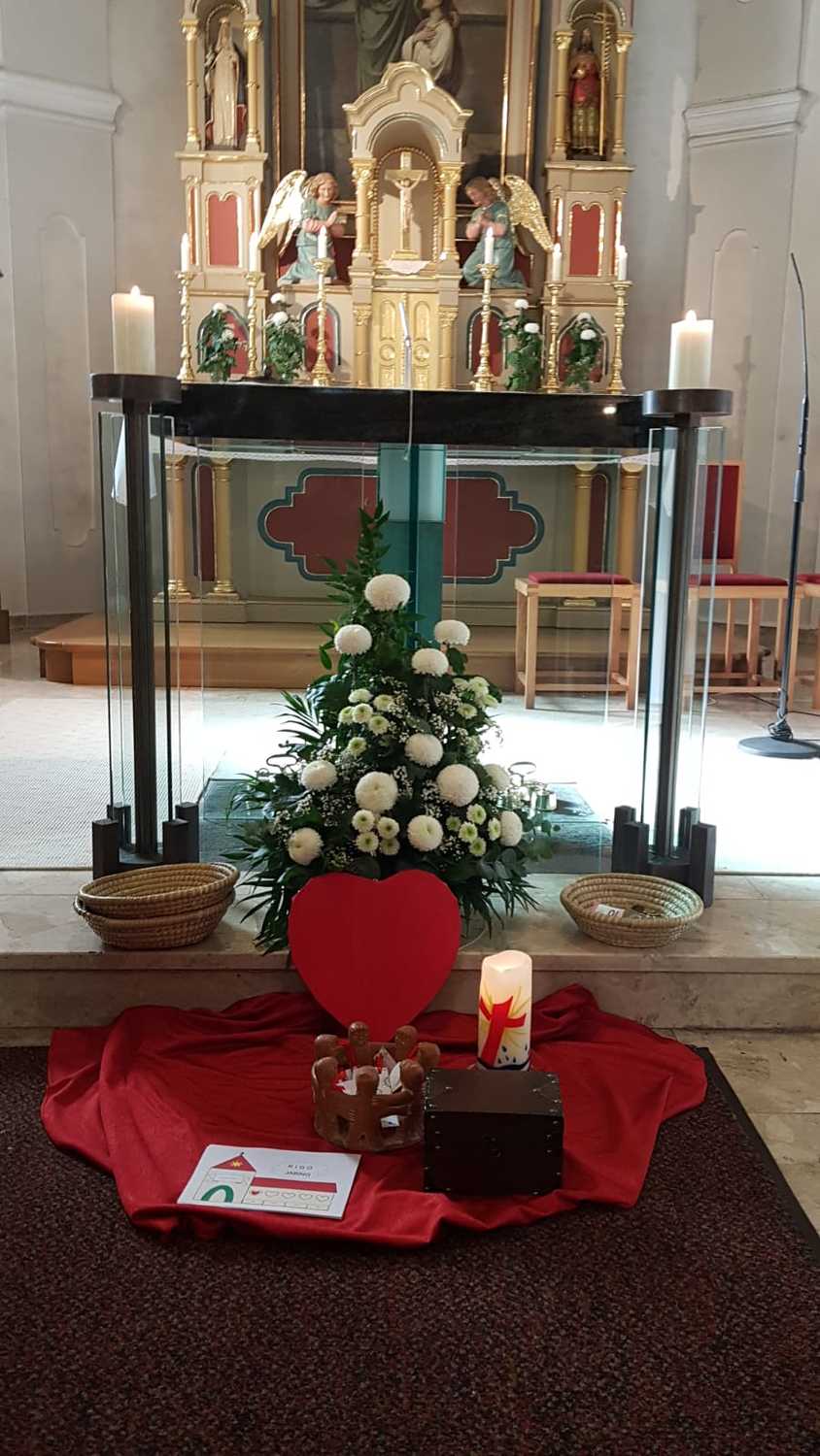 Nach den Fürbitten zogen wir in die Pfarrkirche ein und setzten den Gottesdienst mit Herrn Pfarrer Karall und den anderen Messbesuchern fort.