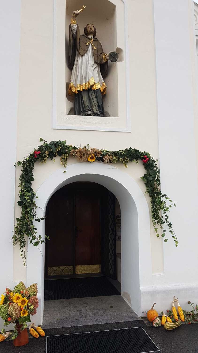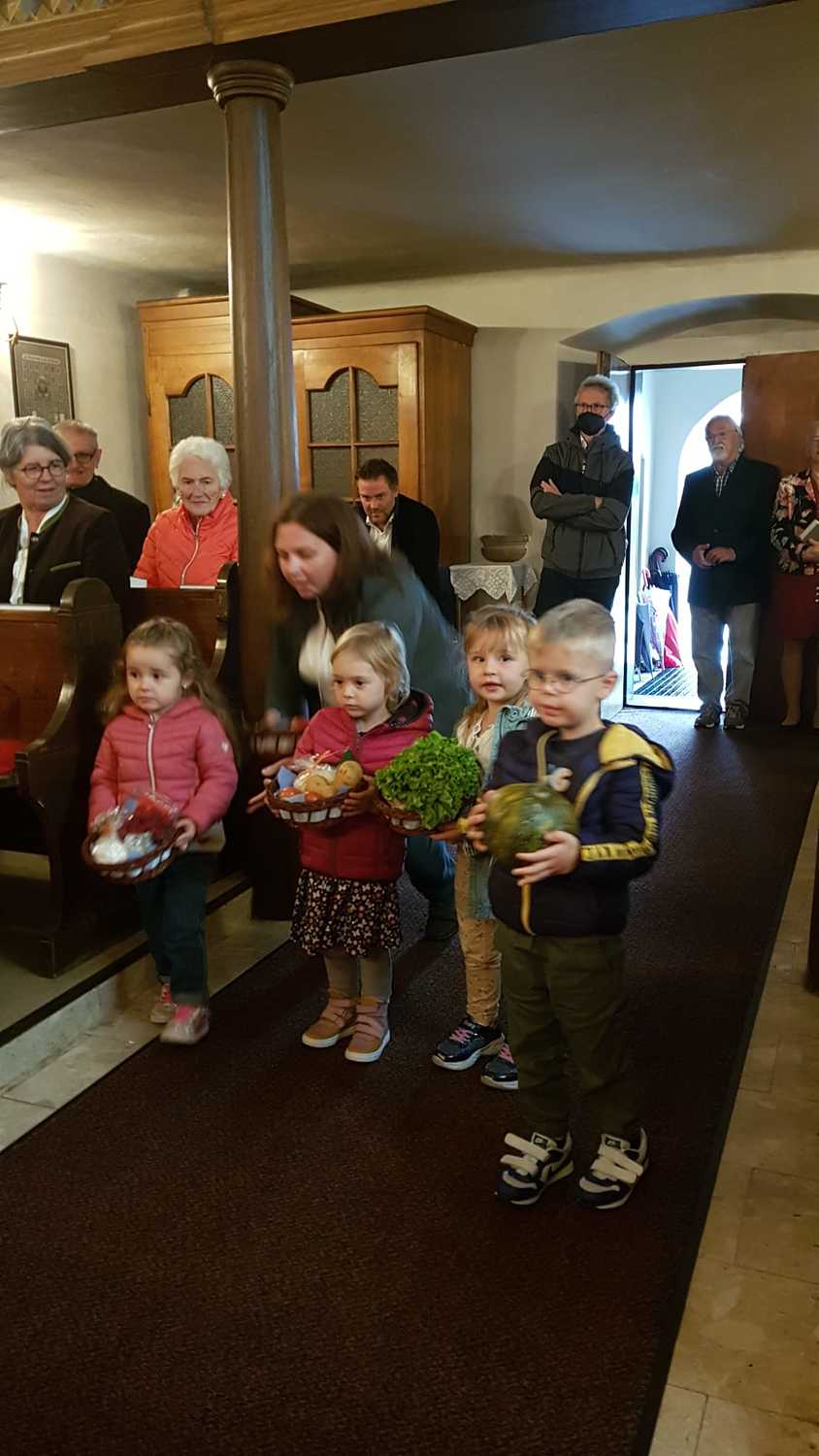 Das heurige Erntedankfest fand unter Mitwirkung vieler Kinder statt. Unsere - von einigen fleißigen und kreativen Frauen geflochtene Erntedankkrone - wurde von den jugendlichen Pfarrgemeinderätinnen feierlich in die Kirche getragen und von Diakon Gustav gesegnet.
