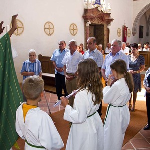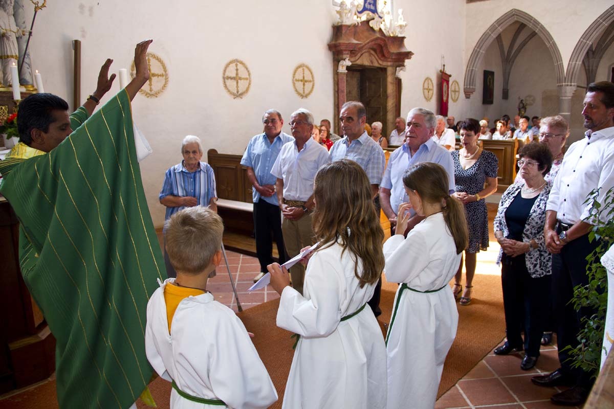 Bei strahlendem Sonnenschein feierten wir am Sonntag, dem 12. August unser Pfarrfest. Ehrengäste an diesem Tag waren alle, die in diesem Jahr ein Ehejubiläum oder einen runden Geburtstag vom 50er aufwärts feiern. Im Rahmen des festlichen Gottesdienstes wurden ihnen die herzlichsten Glückwünsche der Pfarrfamilie ausgesprochen und Pfarrer Sebastian segnete sie feierlich. Zu den Jubilaren gehört auch unsere Messnerin Maria Glösl die heuer ihren 80. Geburtstag feiert. Ihr gilt unser ganz besonderer Dank für ihren jahrzehntelangen unermüdlichen Einsatz für unsere Kirche und Pfarrgemeinde.