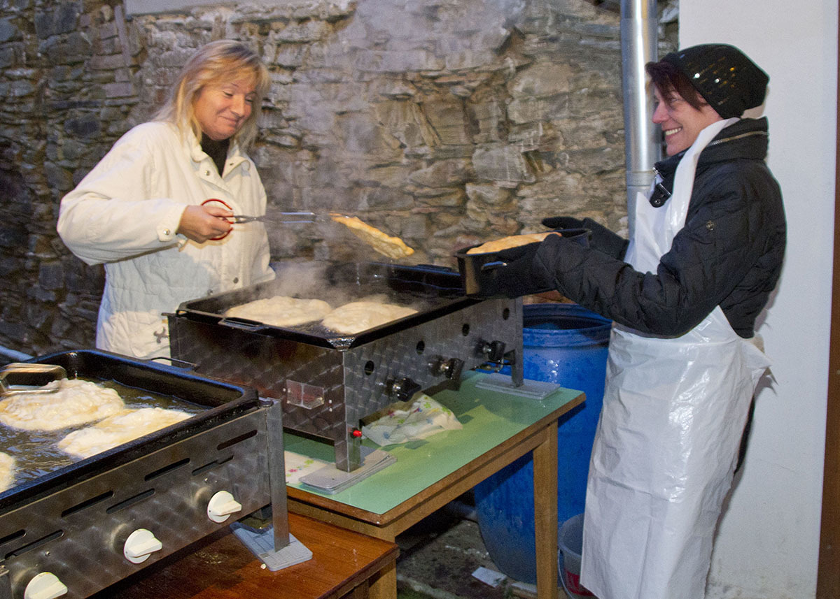 Auch die katholische Pfarre bot den Besuchern einige kulinarische Schmankerl. Besonders begehrt bei den Gästen waren die schmackhaften Langos. Neben den Langos wurden auch süße Mehlspeisen von uns angeboten. Gebacken wurden die Leckereien von den ortsansässigen Frauen. Um sich aufzuwärmen konnten Gäste auch zu Punsch und Glühwein greifen. Dieser wärmte nicht nur kalte Hände, sondern hob auch die Stimmung.