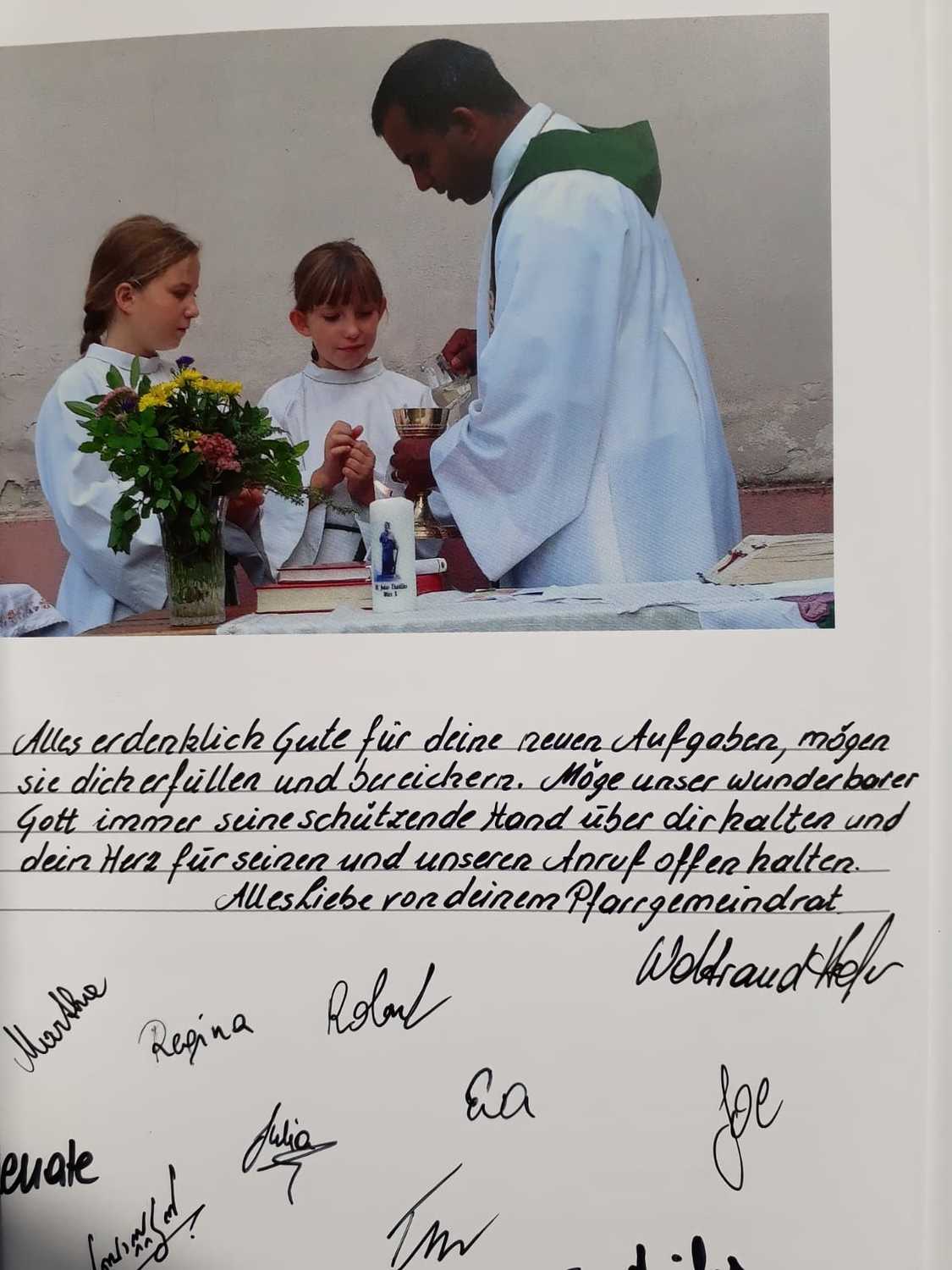Das lachende: Dein Weg geht weiter -du bist Priester und wirst deine eigene Pfarre übernehmen.