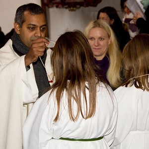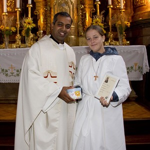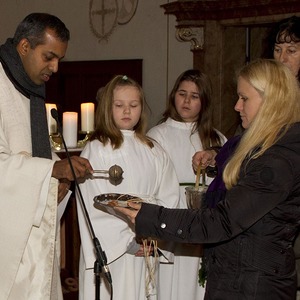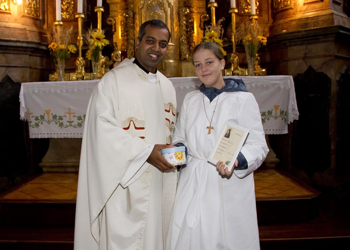 Gleichzeitig wurde die langjährige Ministrantin Jessica verabschiedet. Als Dank für ihren Dienst in der Kirche wurde ihr ein Geschenk als Erinnerung überreicht.