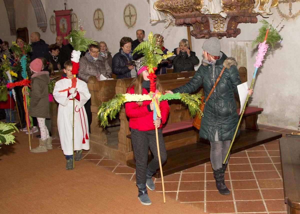 In jener Zeit ging Jesus nach Jerusalem hinauf. Als er in die Nähe von Betfage und Betanien kam, an den Berg, der Ölberg heißt, schickte er zwei seiner Jünger voraus und sagte: Geht in das Dorf, das vor uns liegt. Wenn ihr hineinkommt, werdet ihr dort einen jungen Esel angebunden finden, auf dem noch nie ein Mensch gesessen hat. Bindet ihn los, und bringt ihn her! Und wenn euch jemand fragt: Warum bindet ihr ihn los?, dann antwortet: Der Herr braucht ihn. Die beiden machten sich auf den Weg und fanden alles so, wie er es ihnen gesagt hatte. Als sie den jungen Esel losbanden, sagten die Leute, denen er gehörte: Warum bindet ihr den Esel los? Sie antworteten: Der Herr braucht ihn. Dann führten sie ihn zu Jesus, legten ihre Kleider auf das Tier und halfen Jesus hinauf. Während er dahinritt, breiteten die Jünger ihre Kleider auf der Straße aus. Als er an die Stelle kam, wo der Weg vom Ölberg hinabführt, begannen alle Jünger freudig und mit lauter Stimme Gott zu loben wegen all der Wundertaten, die sie erlebt hatten. Sie riefen: Gesegnet sei der König, der kommt im Namen des Herrn. Im Himmel Friede und Herrlichkeit in der Höhe! Da riefen ihm einige Pharisäer aus der Menge zu: Meister, bring deine Jünger zum Schweigen! Er erwiderte: Ich sage euch: Wenn sie schweigen, werden die Steine schreien.