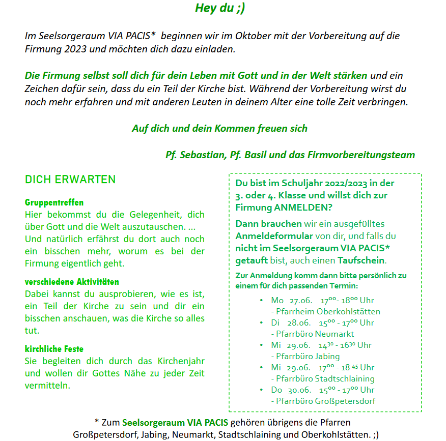 Anmeldung Firmung