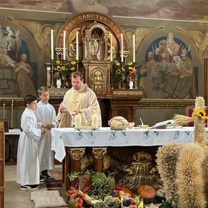 Am Sonntag, 8. Oktober feierte die Pfarre St. Michael ihr Erntedankfest. Traditionell wurde bei der Kapelle Bergstraße begonnen, wo die Kindergartenkinder mit ihren Päagoginnen ein passendes Gedicht und Lied als Einstimmung zur Segnung der Erntekrone und -gaben in die Feier einbrachten. Die Festmesse in der Pfarrkirche wurde von den Erstkommunionkinder des heurigen Schuljahres mitgestaltet. In seiner Predigt verglich unser Herr Pfarrer die Feld- und Gartenfrüchte mit den geistlichen Früchten in unserem Leben und ermutigte dazu, süße und gehaltvolle Früchte hervorzubringen - nicht saure oder verdorbene. Dazu bedürfe es der Kenntnis um geistliche Früchte und um ihre rechte Pflege und Hege.