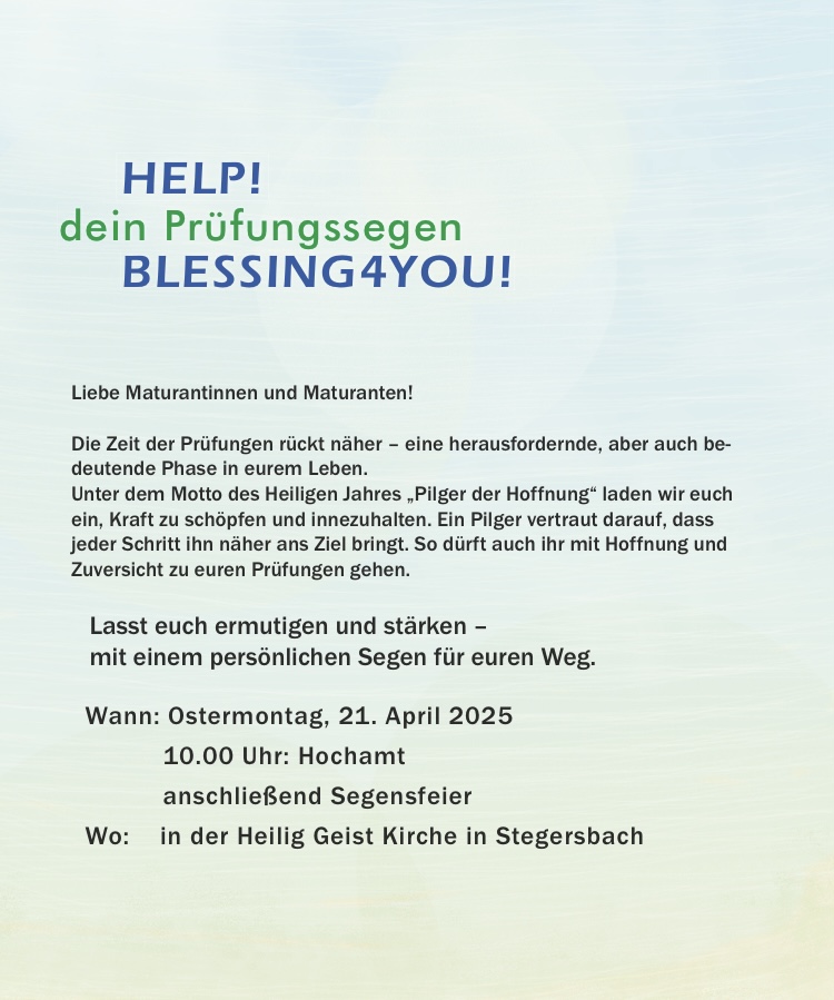 Einladung zum Prüfungssegen am Ostermontag