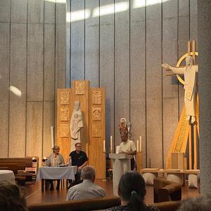 Beginnend mit dem Bamherzigkeitsrosenkranz gings weiter mit einem Vortrag zum Thema: "40 Jahre unterwegs mit der Königin der Liebe"