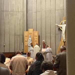Um 17:00 Uhr fand die Eucharistische Anbetung mit Rosenkranz und Betrachtungen der Botschaften der "Königin der Liebe" statt und im Anschluss wurde eine Heiige Messe gefeiert.