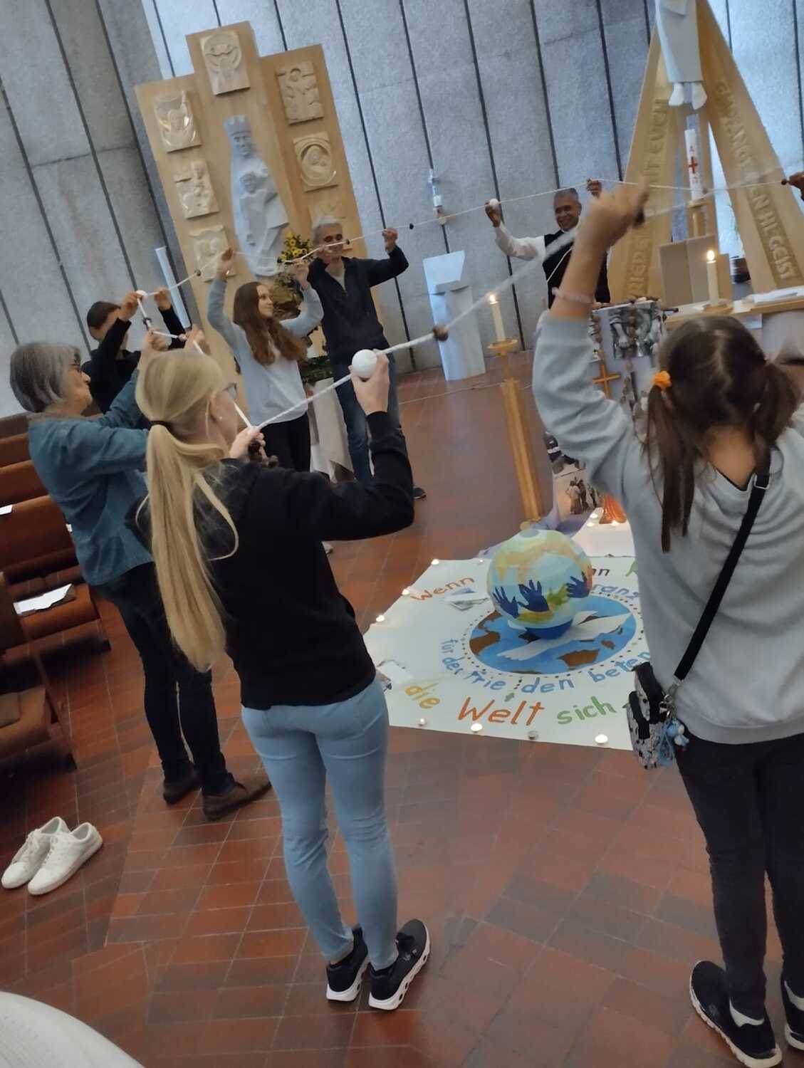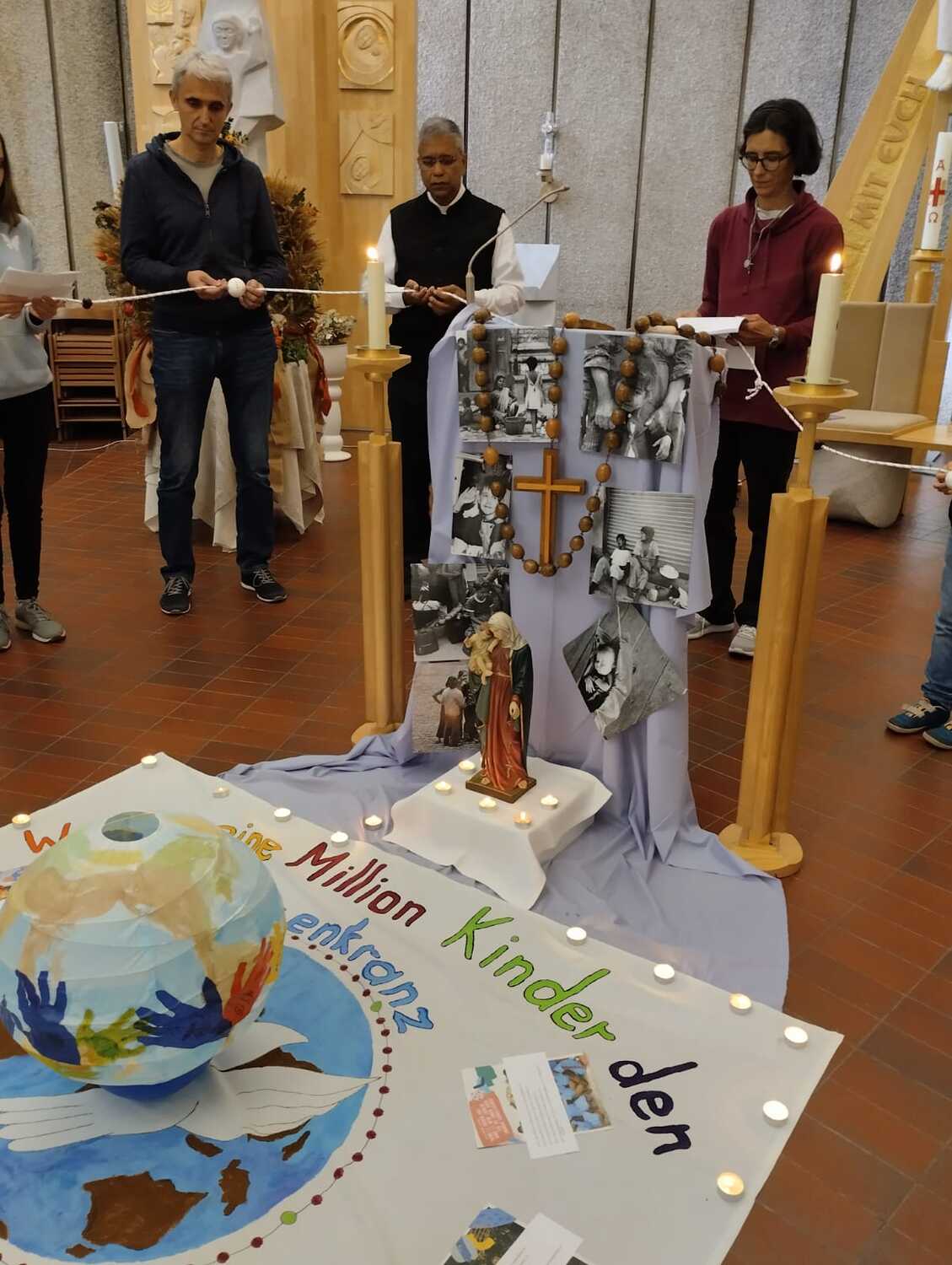 Am 20.10.2023, um 16:00 Uhr beteten die Ministranten gemeinsam mit anderen Kindern, Eltern und unserem Pfarrer Thomas den Rosenkranz für Einheit und Frieden in der Welt und beteiligten sich an der Gebetsaktion.
