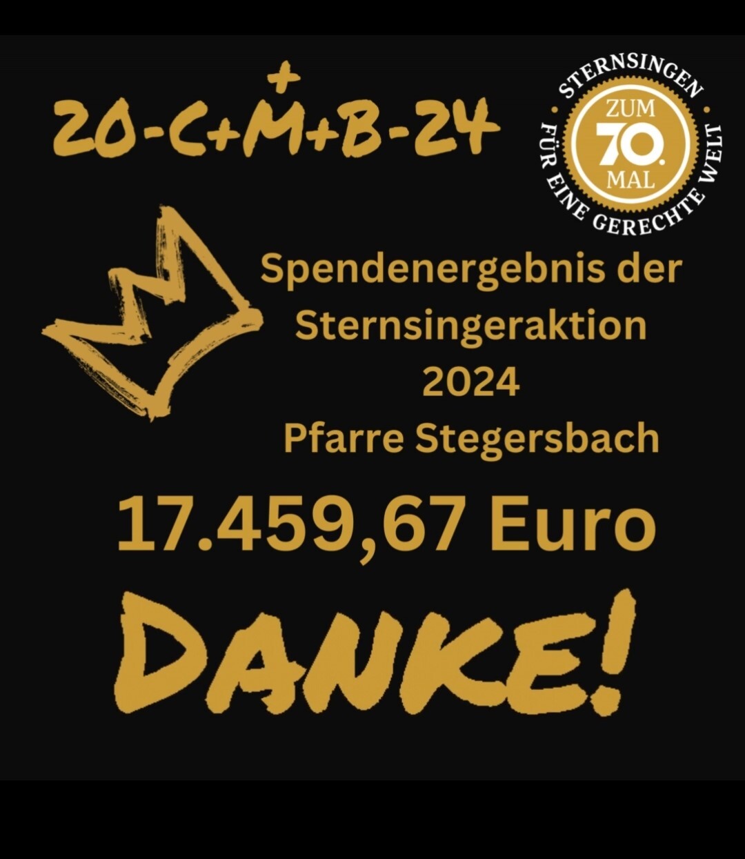Die Sternsingeraktion der Pfarre Stegersbach war auch im heurigen Jahr ein voller Erfolg und brachte wieder ein Rekordergebnis. Unglaubliche 17.459,67 Euro wurden heuer gesammelt!!!