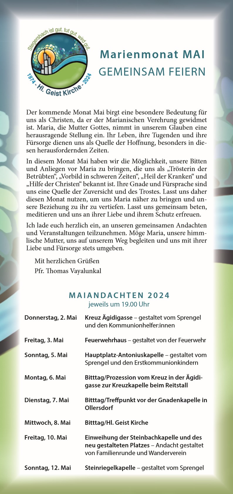 Gottesdienstordnung Stegersbach/Ollersdorf