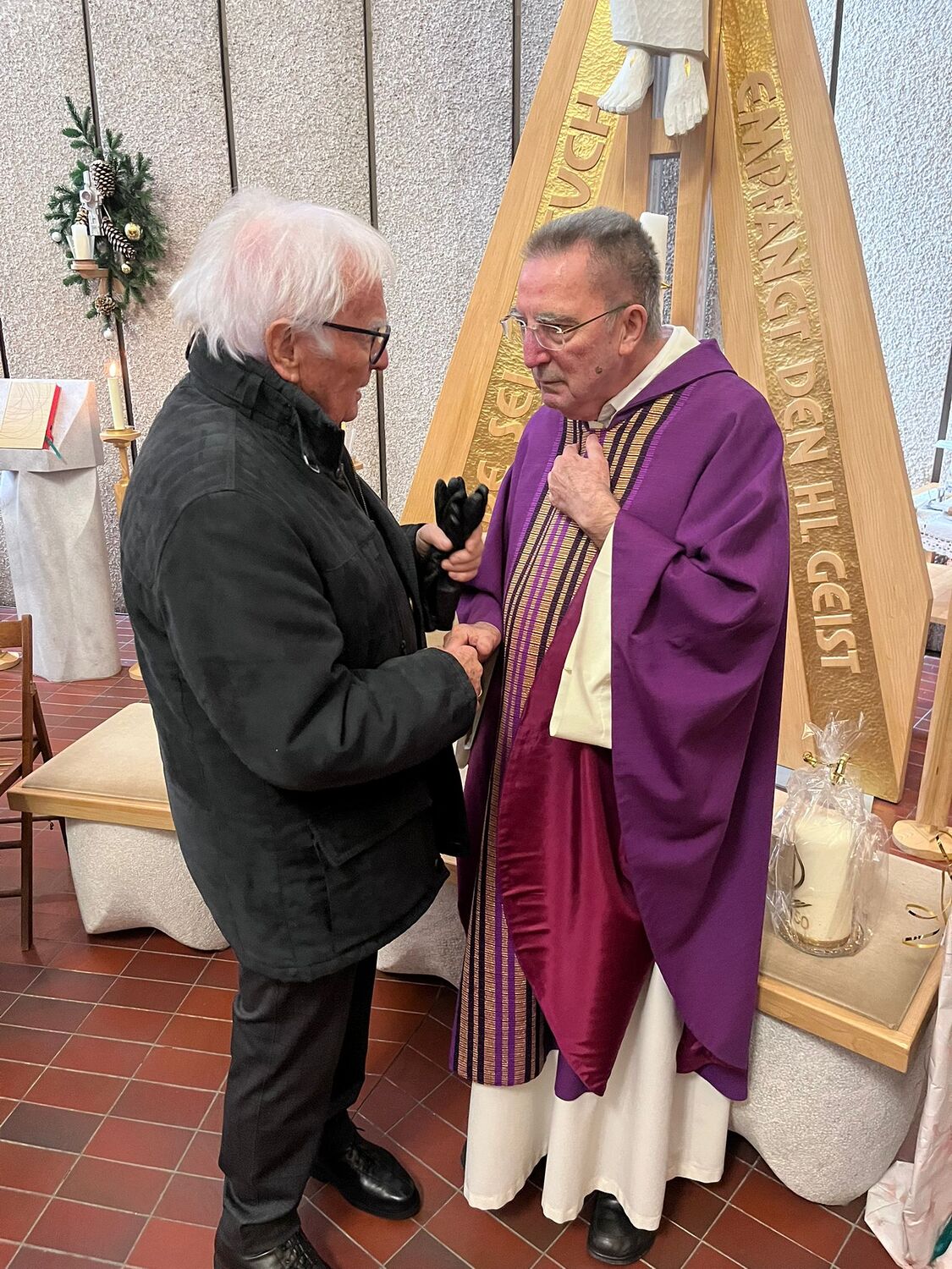 Im Anschluss fand im Pfarrzentrum eine Agape statt, wo die Pfarrgemeinde persönlich dem Jubilar gratulieren konnten.