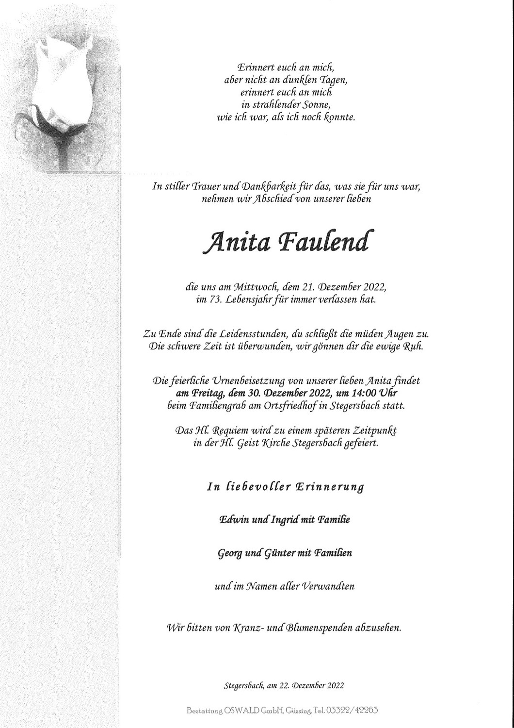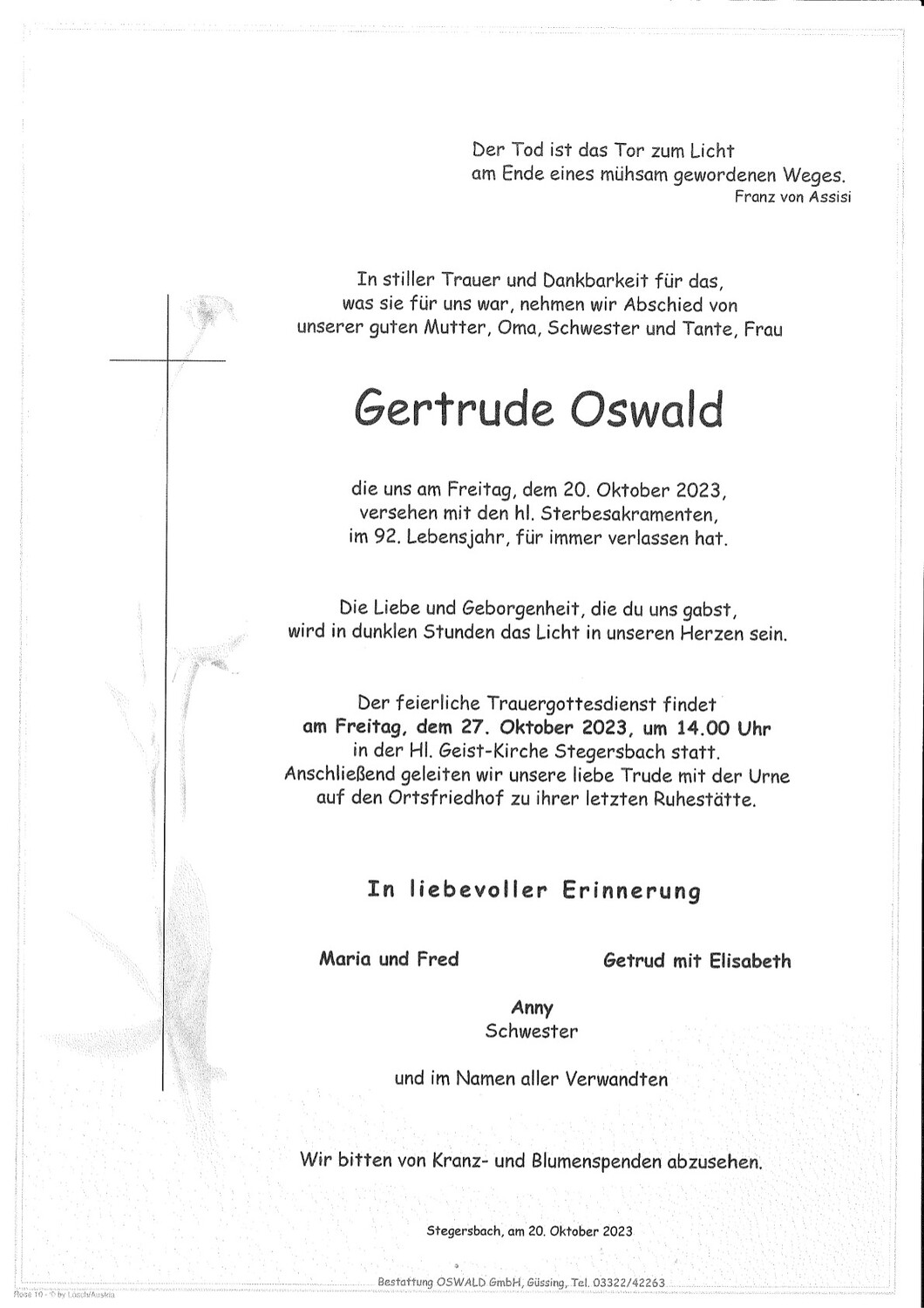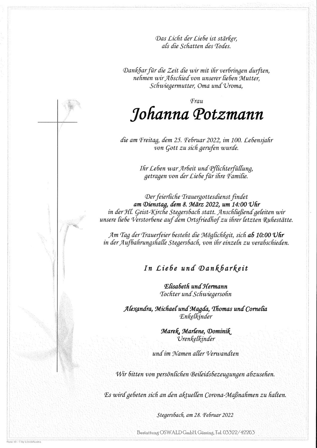 Gottesdienstordnung Stegersbach/Ollersdorf