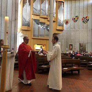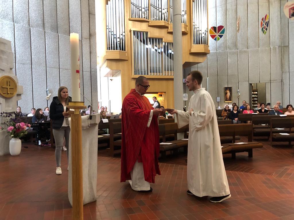 Am 28.05.2023 fand in der Heiligen Geist Kirche das Hochfest der Herabkunft des Heiligen Geistes /Patrozinium der Heiligen Geist Kirche statt. Im Zuge der Messfeier wurde feierlich durch Pfarrer Mag Thorsten Carich die Beauftragung von Patrick Krammer zum Leiter von Wort-Gottes-Feiern vollzogen. Die Messfeier wurde vom Kirchenorchester unter der Leitung von Direktor Martin Wukovits gestaltet.