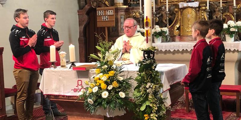 Unser Pfarrer war angetan von der großen Beteiligung an dieser Spielermesse und bedankte sich mit sichtlicher Ergriffenheit bei den Sportvereinen, den Musikern, den Ministranten und den Messbesuchern.