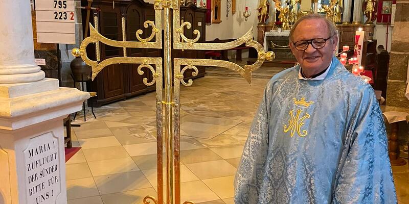 Im Rahmen des Wallfahrtsgottesdienstes zum Fest Maria Empfängnis am 08. Dezember 2024 in der Wallfahrtskirche Maria Weinberg wurde das neu vergoldete Turmkreuz durch GR Dechant Mag. Karl Schlögl gesegnet.