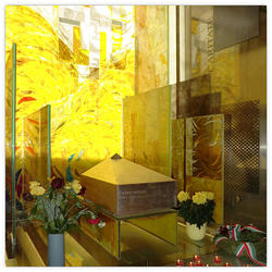 In der Südfassade sind zwei Grabplatten eingemauert:Die linke Platte ist dem protestantischen Grundherrn Balthasar Batthyány (1543-1590) gewidmet. Die Rechte zeigt vermutlich Franz I. Batthyány (1497-1566).