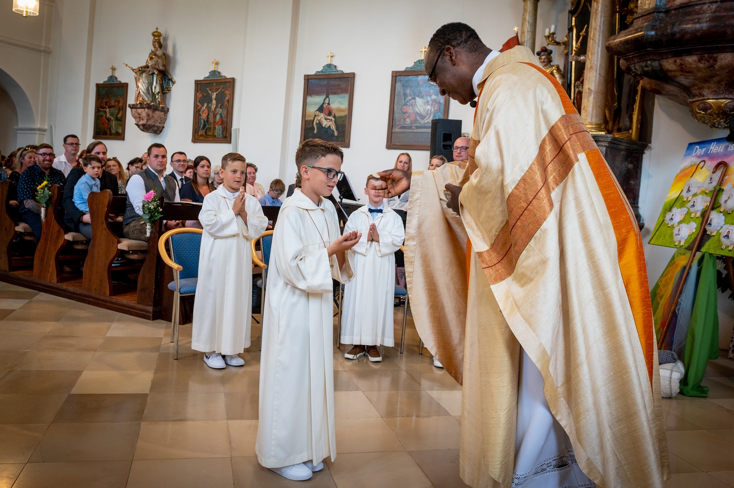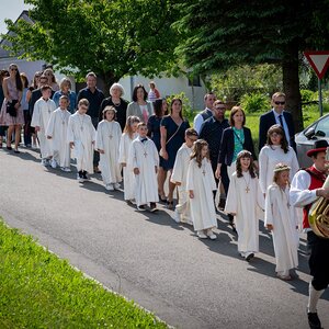 "Derr Herr ist mein Hirte" - unter diesem Motto stand die heurige Erstkommunion unserer Pfarre, die traditionell am Pfingstmontag begangen wurde. Feierlich begleitet vom Musikverein St. Martin an der Raab zogen unsere elf Erstkommunionkinder gemeinsam mit ihren Taufpatinnen und Taufpaten, dem Lehrkörper und Dechant Martin-Ralph Kalu in die Kirche ein. Der Gottesdienst mit dem würdigen Kommunionempfang der Kinder wurde musikalisch von Nadine Baumgartner, Steffi Kern und Markus Pfeifer umrahmt und durch Texte der Kinder mitgestaltet. Im Anschluss wurden alle Mitfeiernden vom Pfarrgemeinderat auf kleine Speisen und Getränke eingeladen. Danke an alle, die zum Gelingen dieses besonderen Tages beigetragen haben!