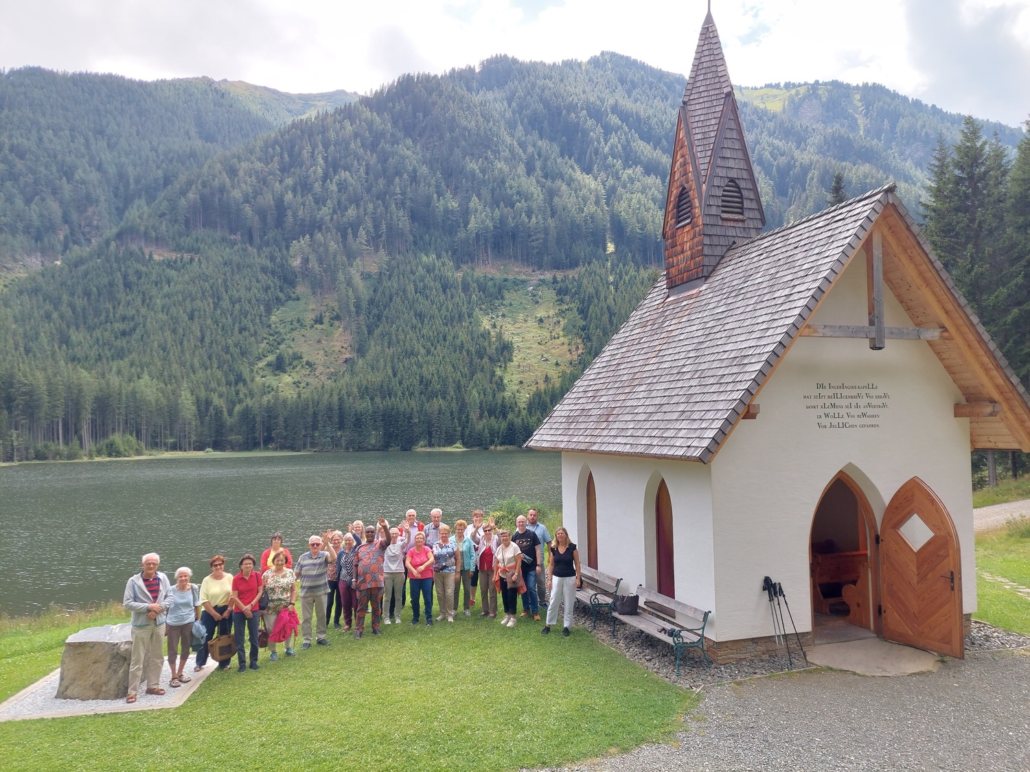 Weiterfahrt zum Ingeringsee auf 1.221 m ü. A. Die Kapelle am Ingeringsee wurde 2015 von der Forstverwaltung Wasserberg errichtet und dem Heiligen Klemens von Rom ("Klementikapelle") geweiht. Ein besonderer Kraftplatz der zum Innehalten und zum spontanen "Lobgesang" einlud.