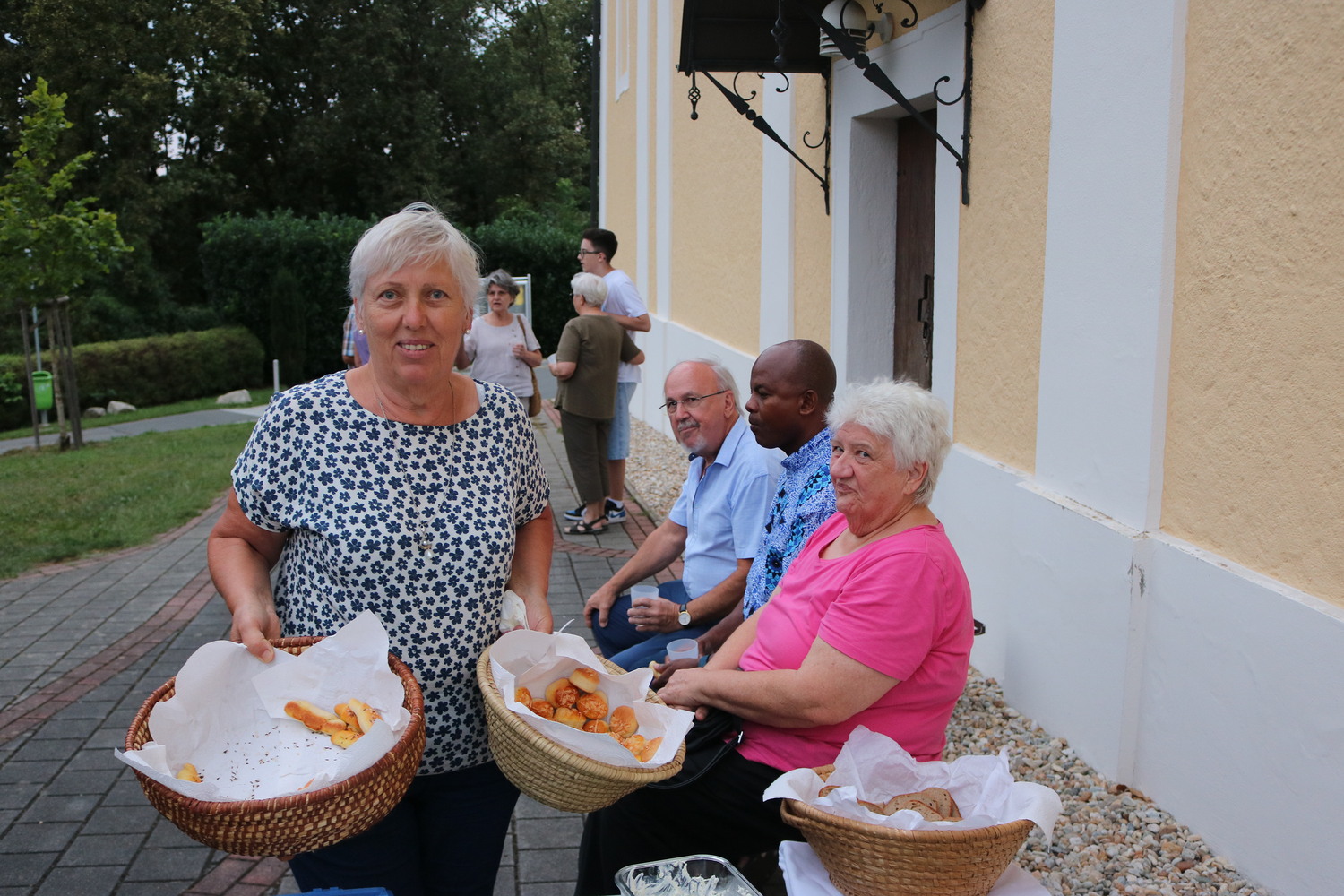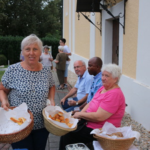 Im Anschluss wurden noch zahlreiche Gespräche, am neu gestalteten Kirchenvorplatz bei kühlen Getränken, leckeren Mehlspeisen und Gebäck, organisiert durch den PGR, geführt.