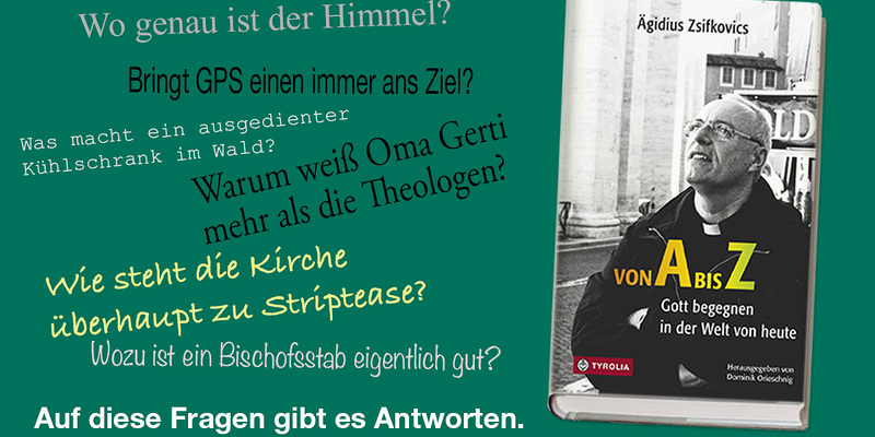 Der Titel ist Programm: „Von A bis Z. Gott begegnen in der Welt von heute“ heißt das neue Buch des Eisenstädter Diözesanbischof Ägidius J. Zsifkovics, das Anfang November erscheint. Von A bis Z buchstabiert der Bischof der Martinsdiözese, der zugleich Europabischof und Bischof für die Roma und Sinti in Österreich ist, den Kern des Christseins aus. Erfrischend modern, lebendig und unkompliziert ist seine Sprache, die das Verstaubte und Museale eines antiquierten Glaubensvokabulars mit viel Schwung, Kreativität und Humor, aber vor allem mit einem feinen Sensorium für die Lebenswirklichkeiten der Menschen abschüttelt.