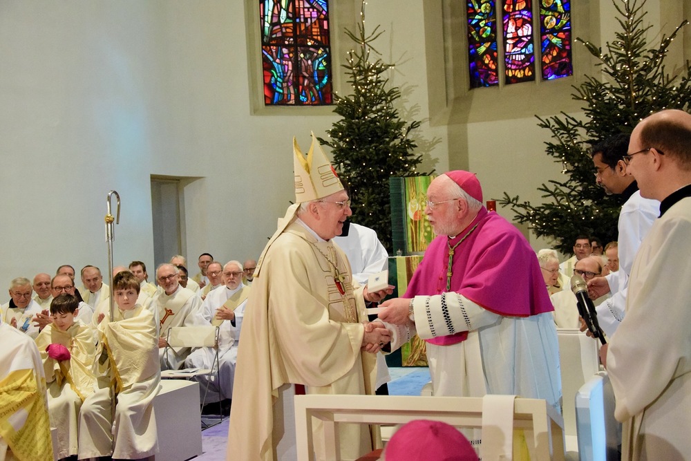 "In der Leitung der Diözese hast Du Dich vor allem darum bemüht, den Dir anvertrauten Gläubigen die Sakramente des Heils zu spenden – in dieser unserer Gesellschaft, die in zunehmendem Maße Werte missachtet und anscheinend den Sinn für die höchsten Güter und für das Leben selbst verloren hat."