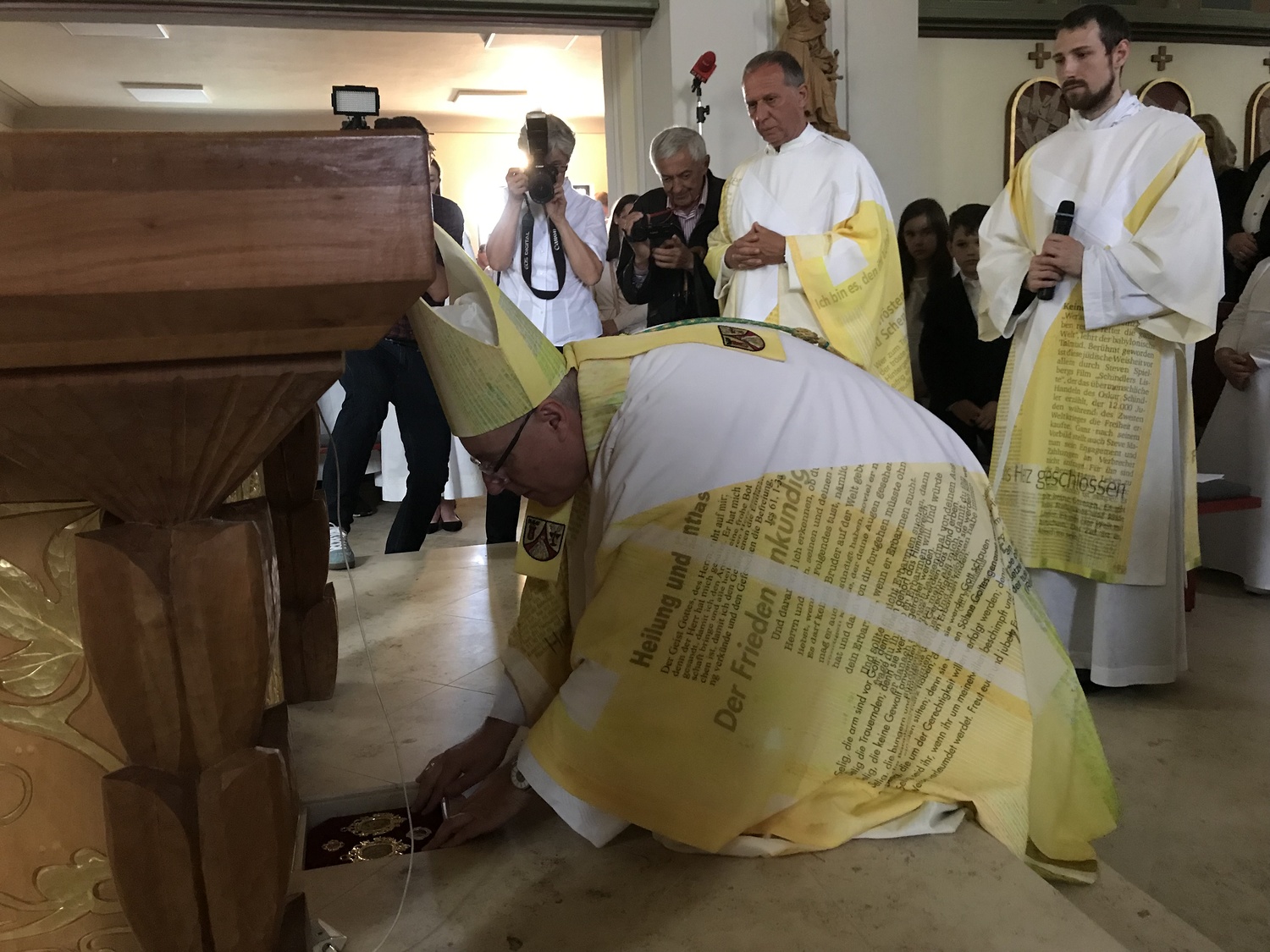 Pfarrer Stefan Jahns bedankte sich in einer kurzen Ansprache bei Bischof Zsifkovics. Dieser habe das Projekt der Kirchenrenovierung allererst möglich gemacht. Mit der Kirche wurde auch der Altar, in den 70er Jahren gestaltet vom Stinatzer Künstler Thomas Resetarits, geweiht. "Der Blick auf den Altar soll uns an Jesus erinnern, dem wir als Christen nachfolgen sollen und der uns im Leben hilft, unser Kreuz zu tragen und den Sinn des Lebens zu finden", sagte Bischof Zsifkovics bei der Altarweihe.