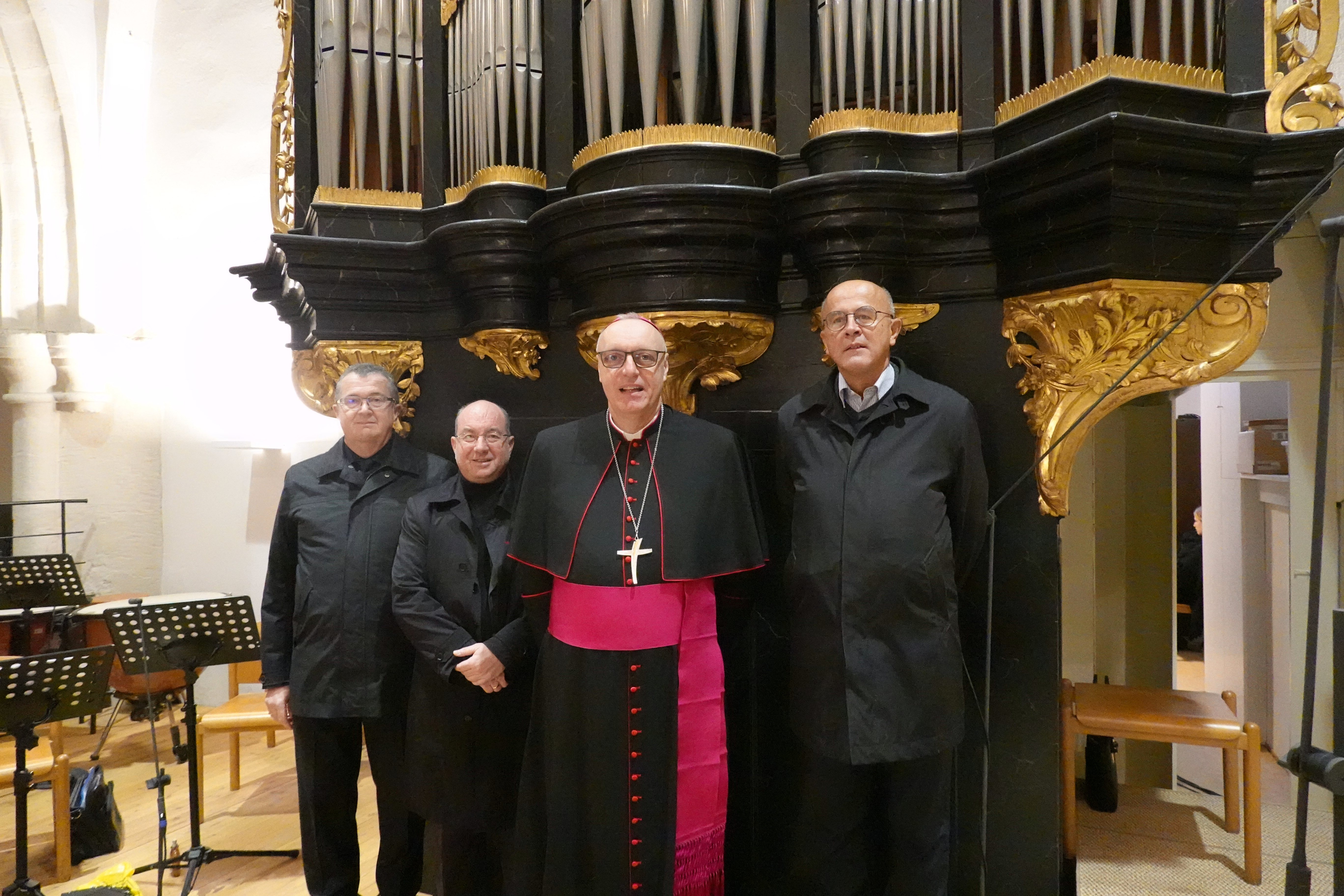 v.l.n.r. Ordinariatskanzler Gerhard Grosinger, Dom- und Diözesanmusikdirektor Thomas Dolezal, Diözesanbischof Ägidius J. Zsifkovics und Orgel-Kurator Gottfried Allmer am heutigen Festtag des heiligen Martin auf der Musikempore im Eisenstädter Martinsdom